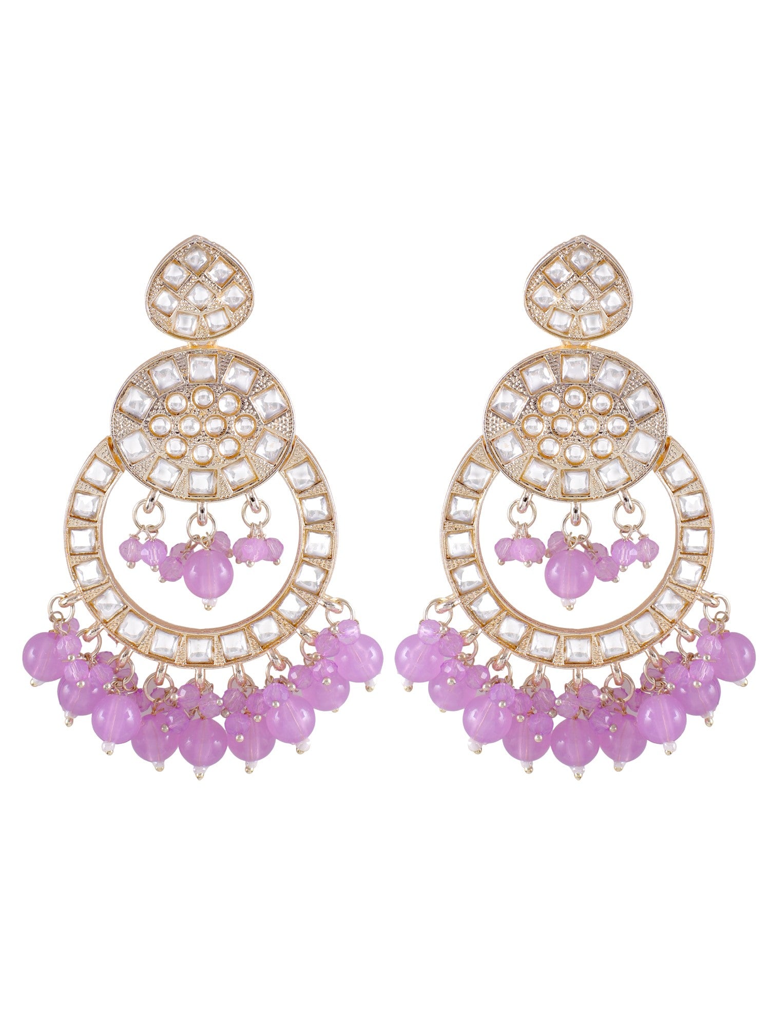 - Kundan Studded Lavender Dangler Earrings for Women - Ethnic Long Earrings for Party Wear