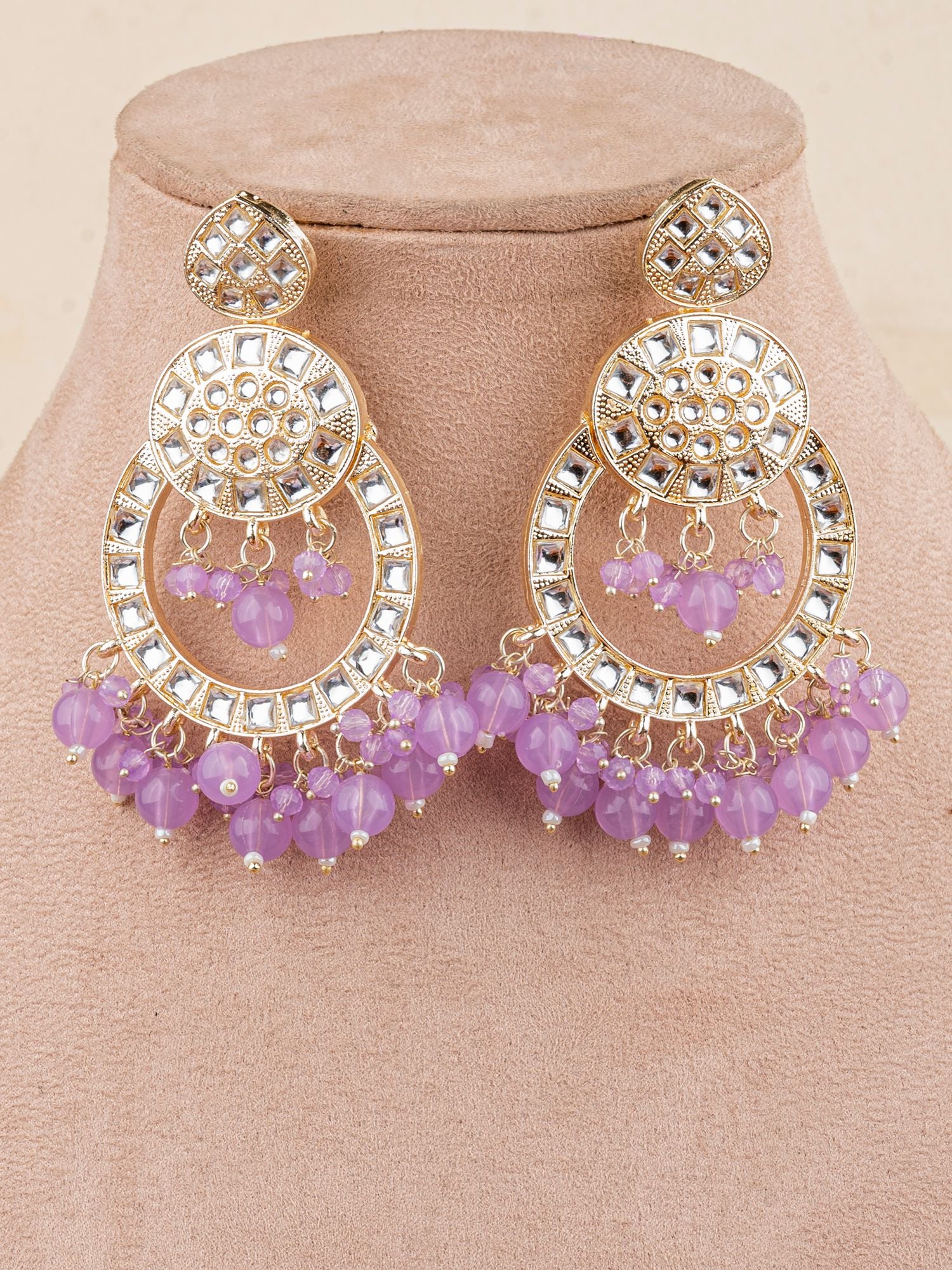 Kundan Studded Lavender Dangler Earrings for Women - Ethnic Long Earrings for Party Wear