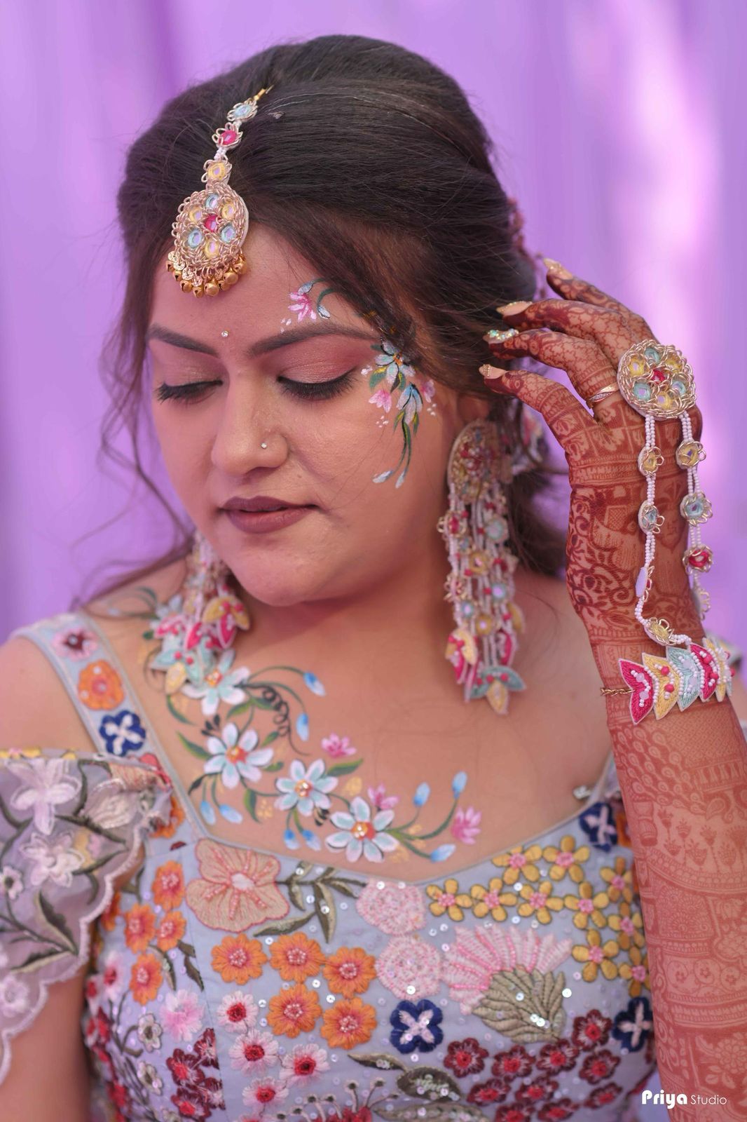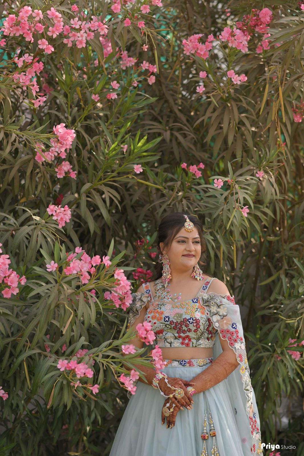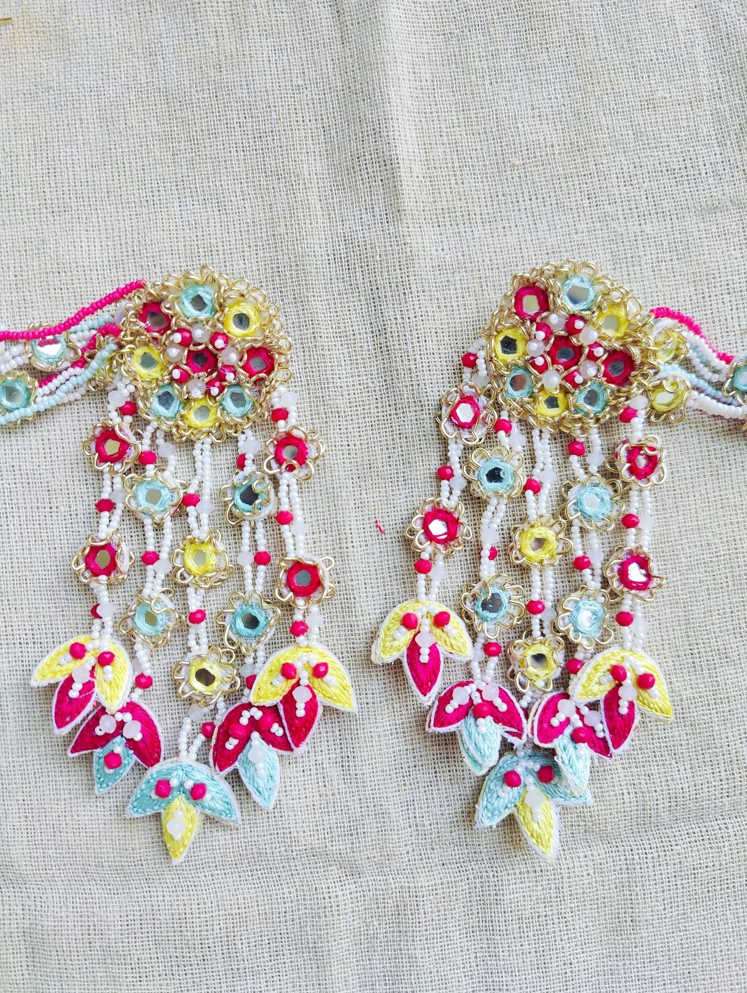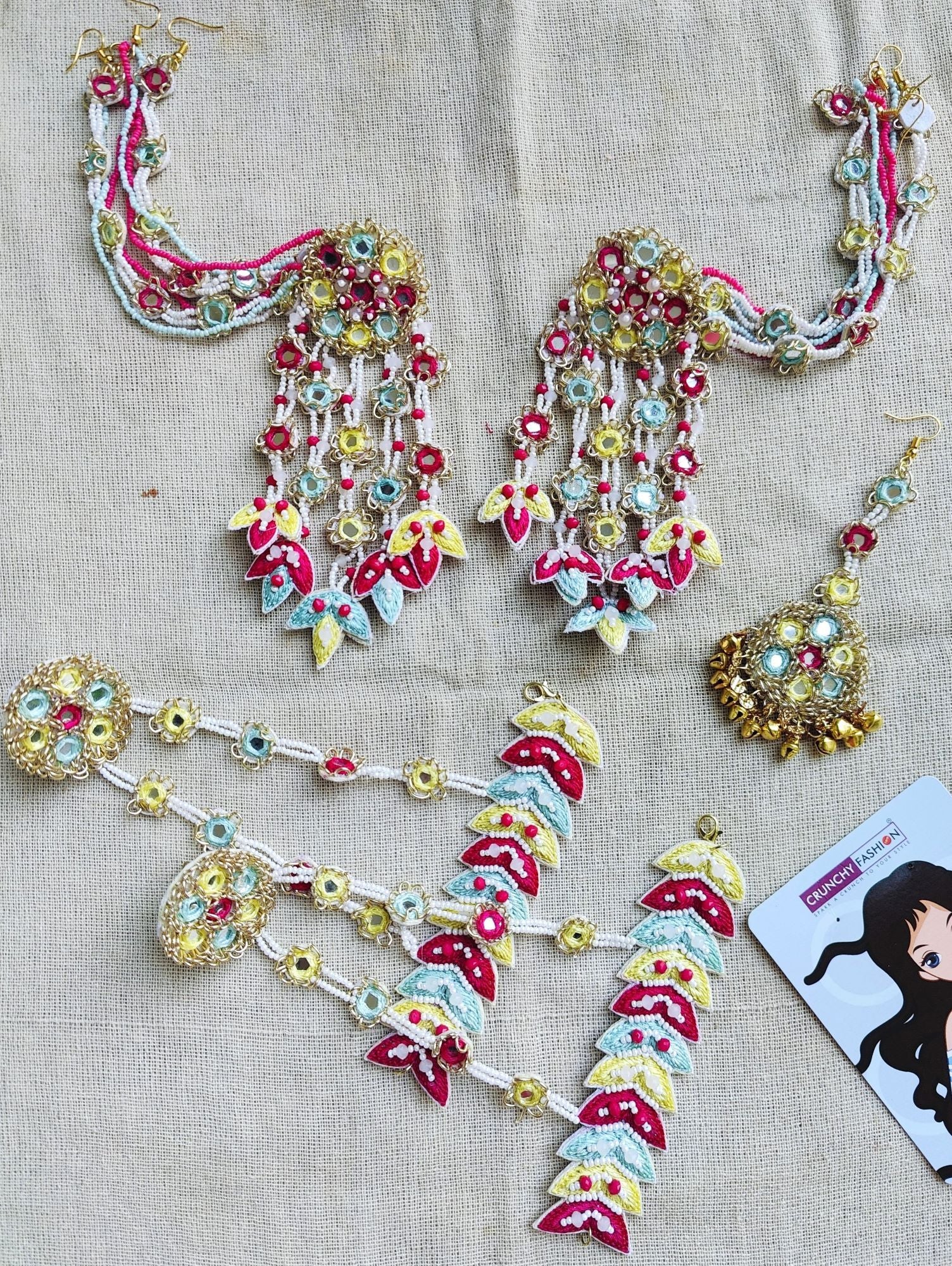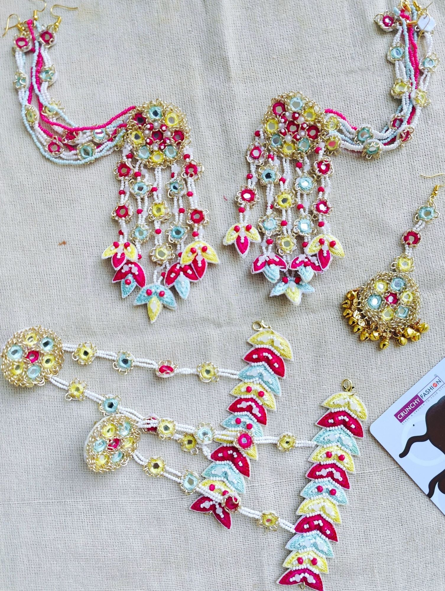 Mahira Pink-SkyBlue-Yellow Floral Beaded Bridal Haldi-Mehndi Set