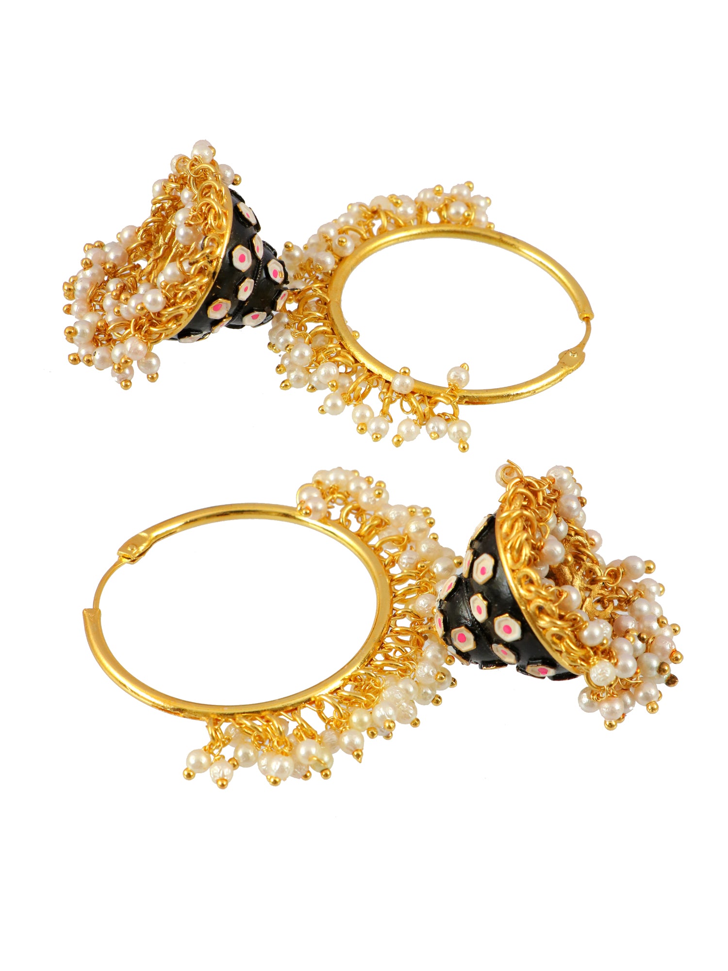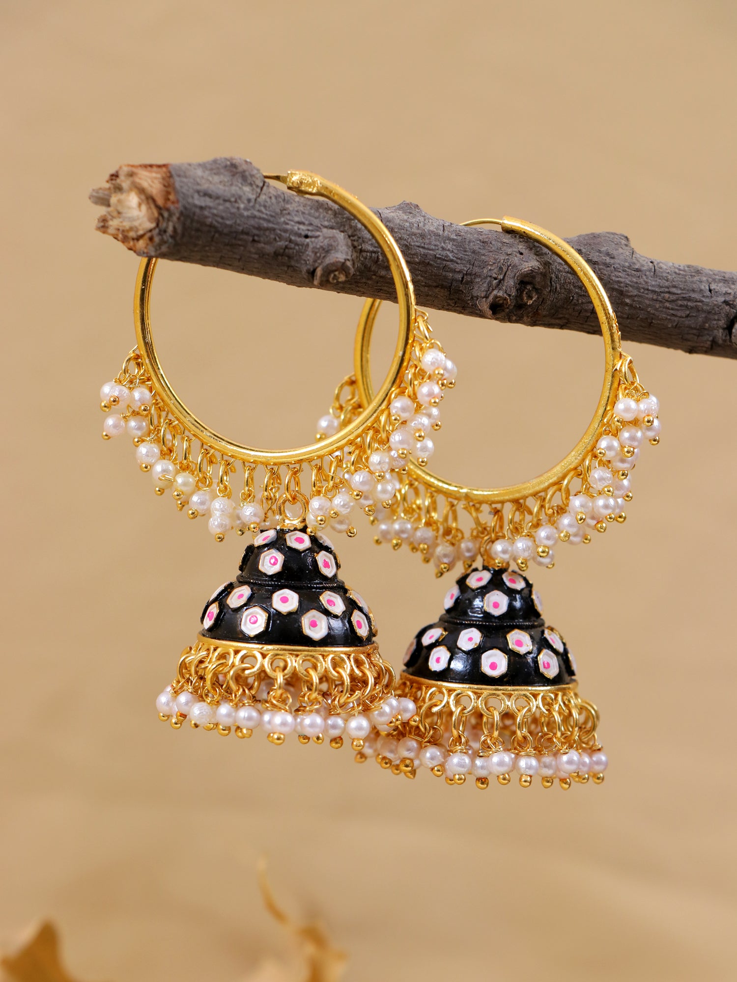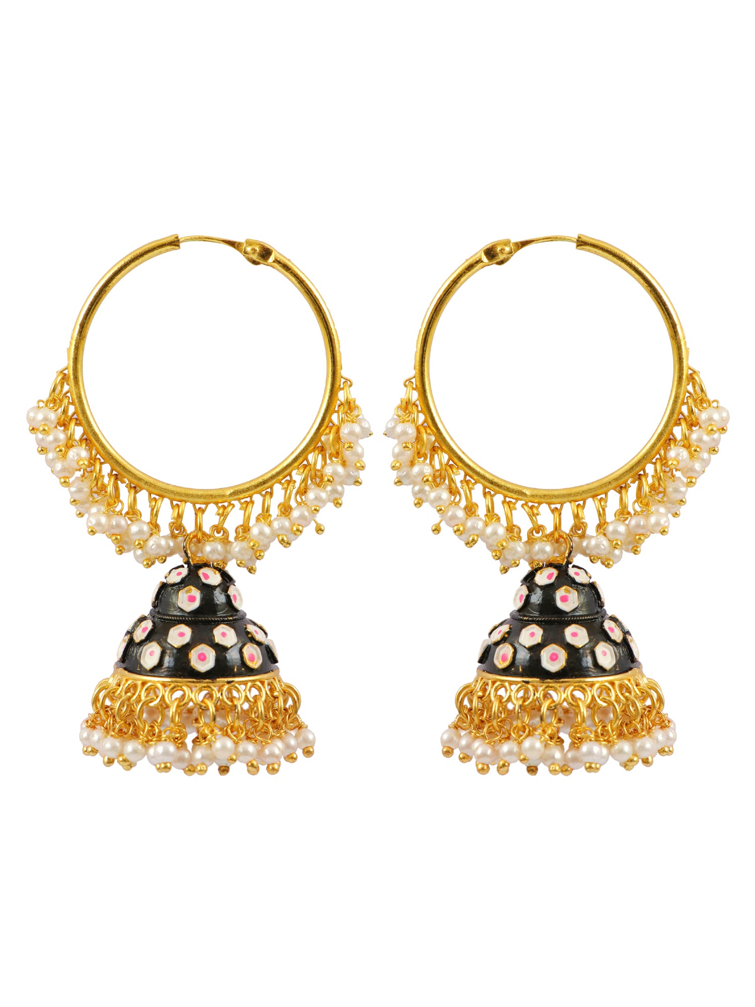 Exquisite Meenakari Gold-Plated Hoops Jhumka with White Pearls for Women