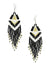 Monochrome Black-White Handmade Tasseled Beaded Earrings