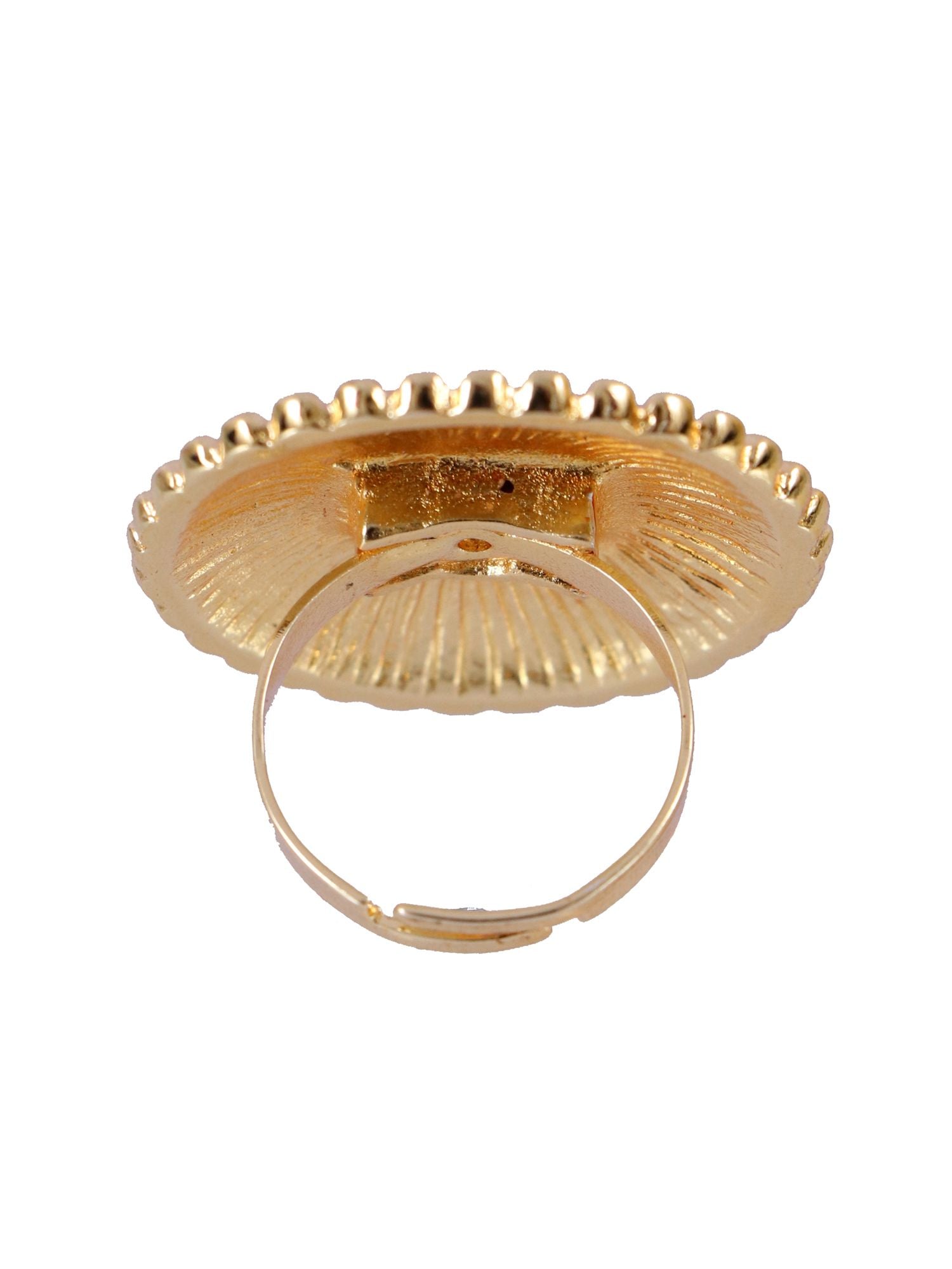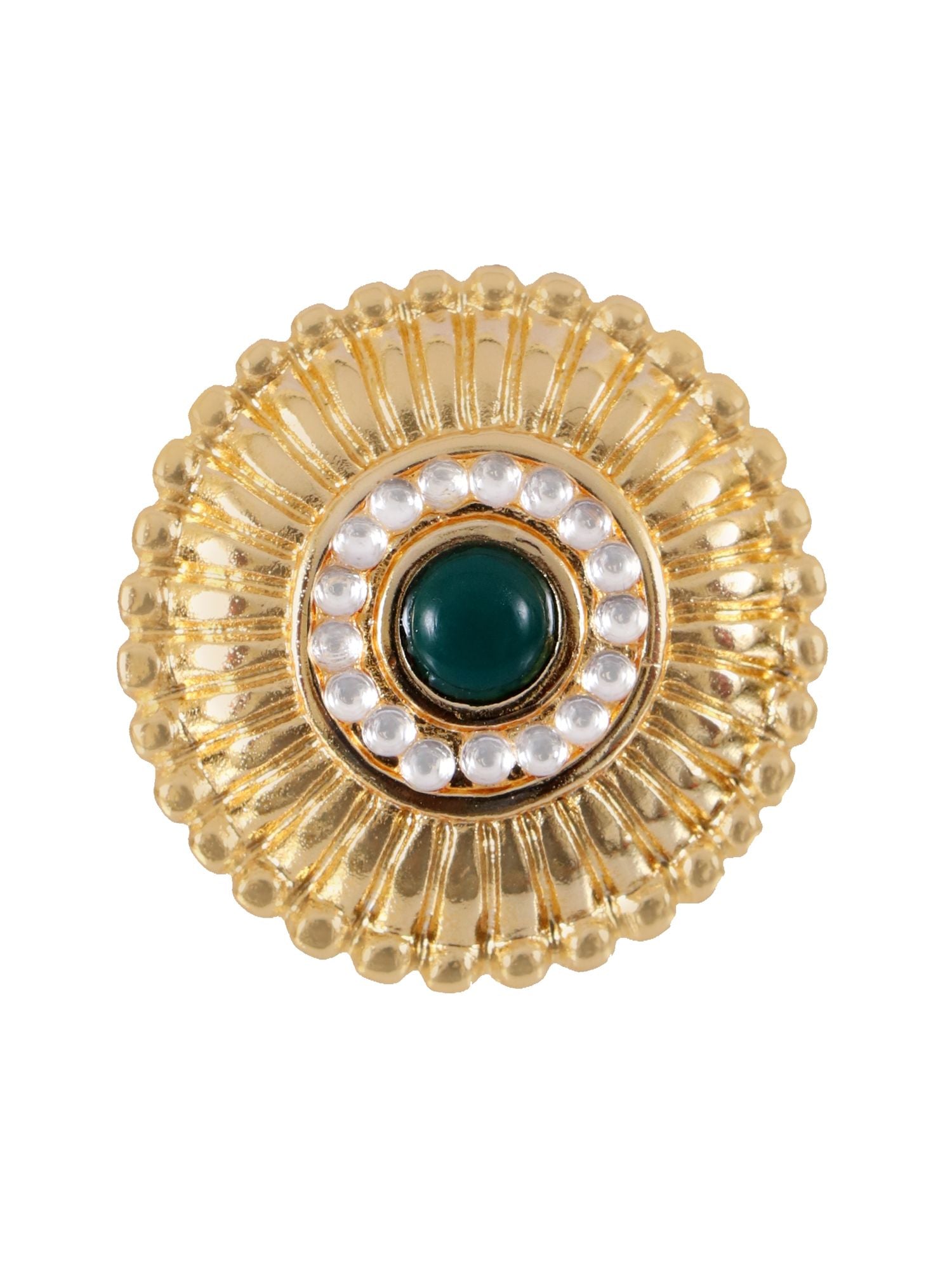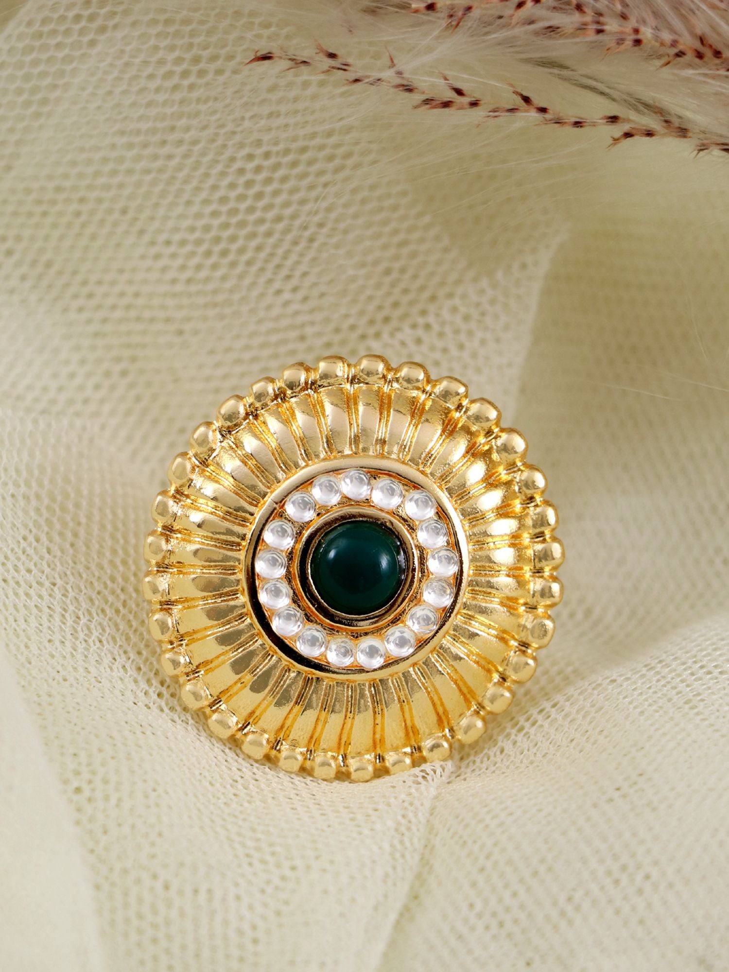 Monsoon Blossom: Gold-Plated Green Crystal Ring with Floral Design for Party Wear