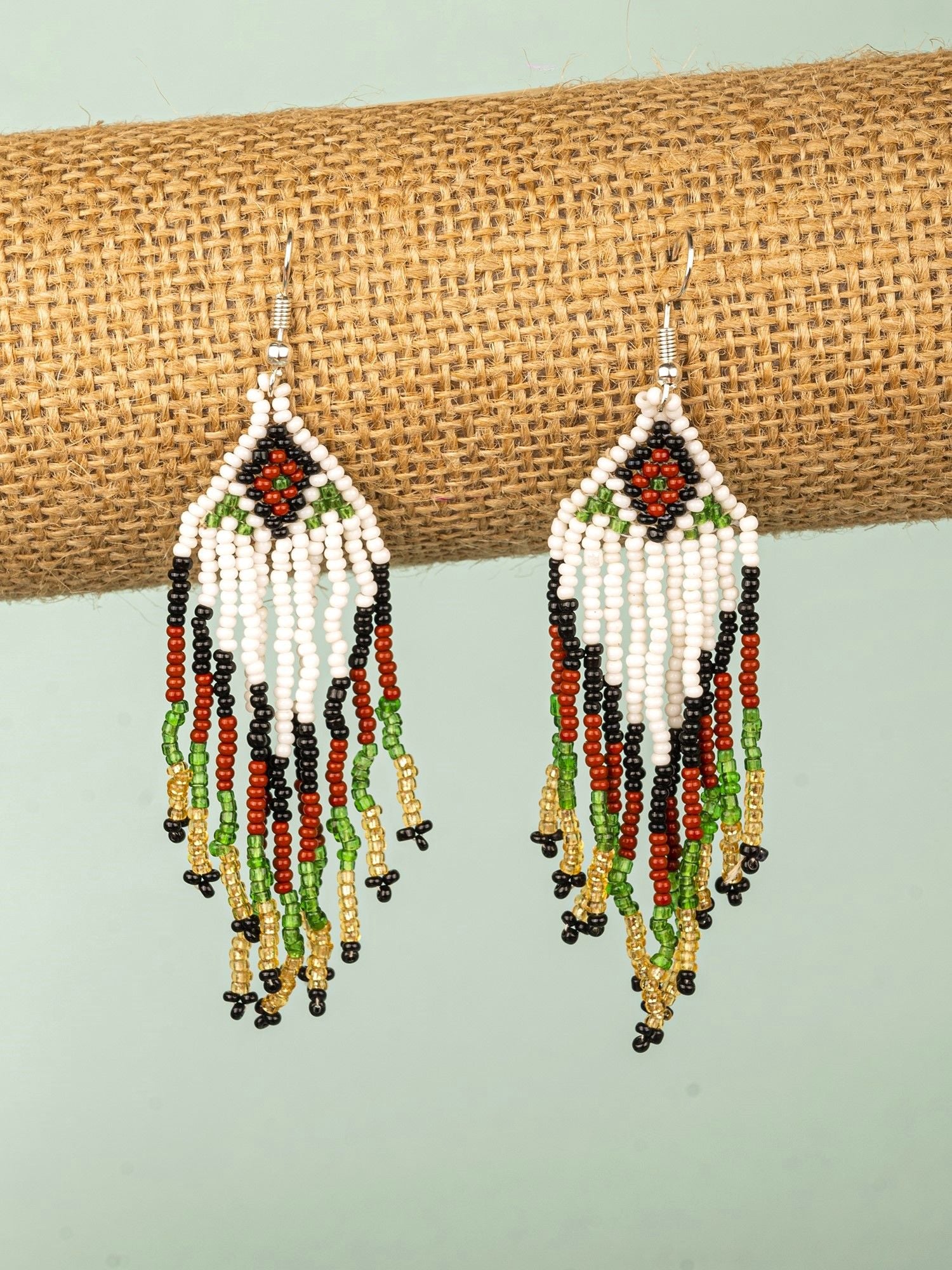 Floral Fiesta: Multicolor Beaded Tassel Drop Earrings for Fashion Forward Seniors and Women