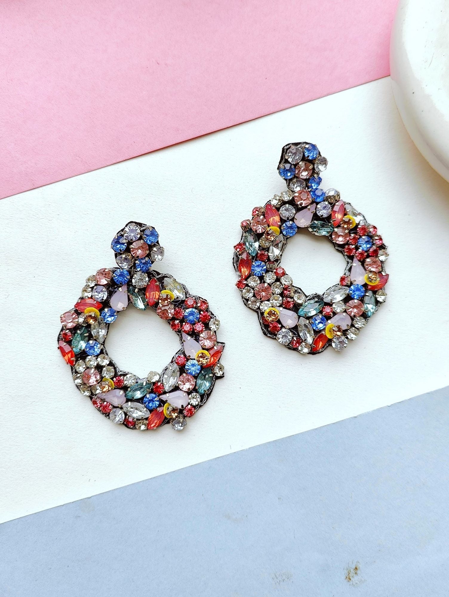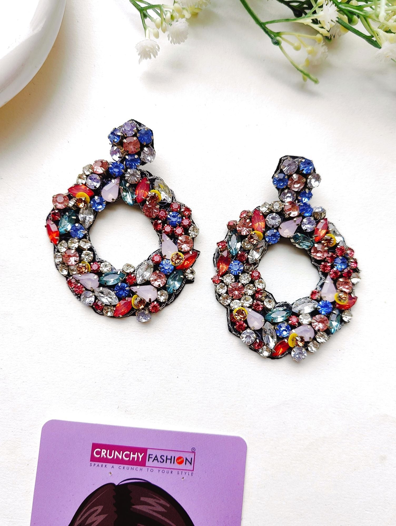 - Handcrafted Heart's Whisper: Multicolor Crystal Studded Earrings for Women & Girls
