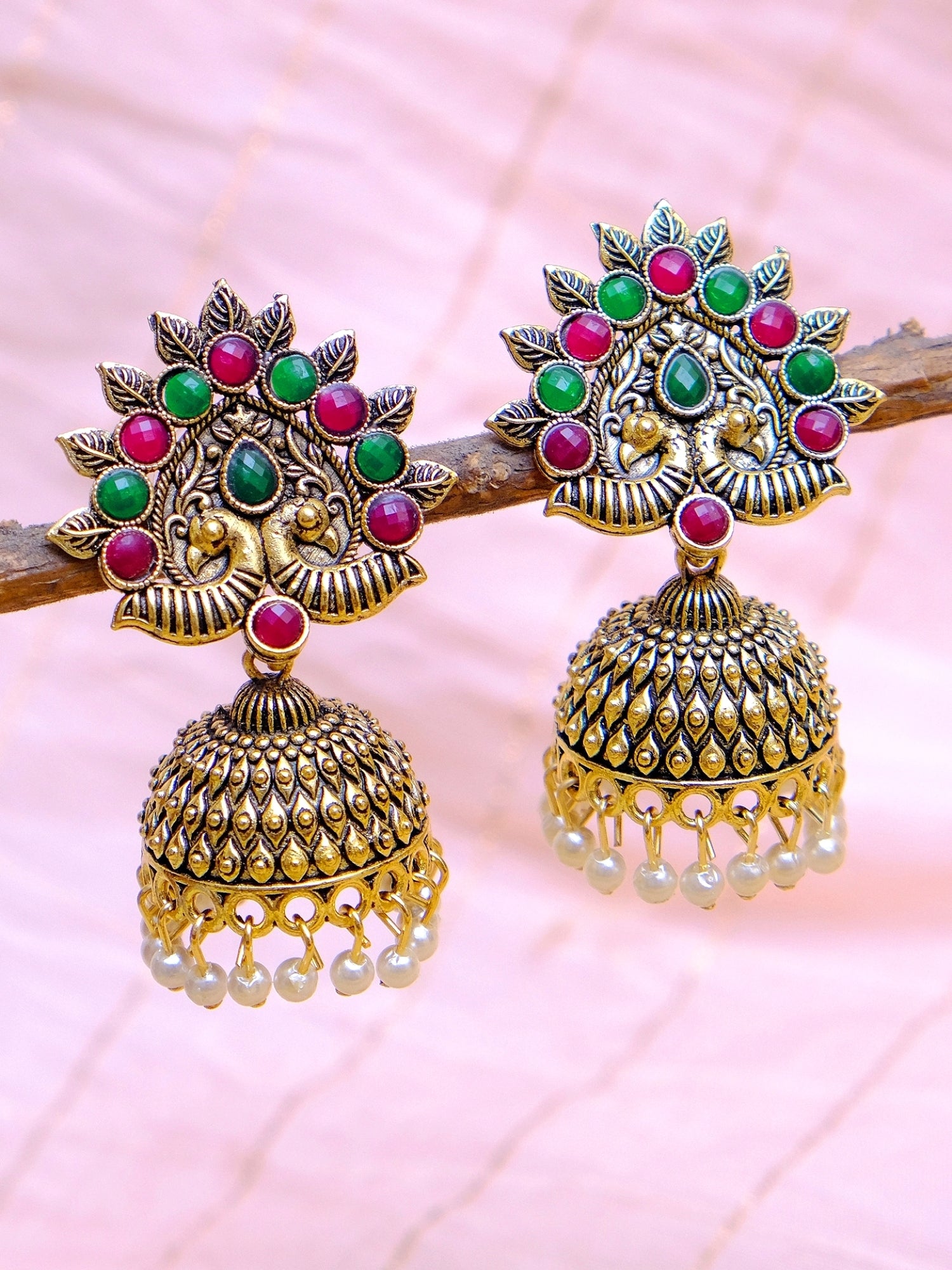 - Multicolor Gold-Plated Beautiful Ladies Peacock Earring Set RAE1072
