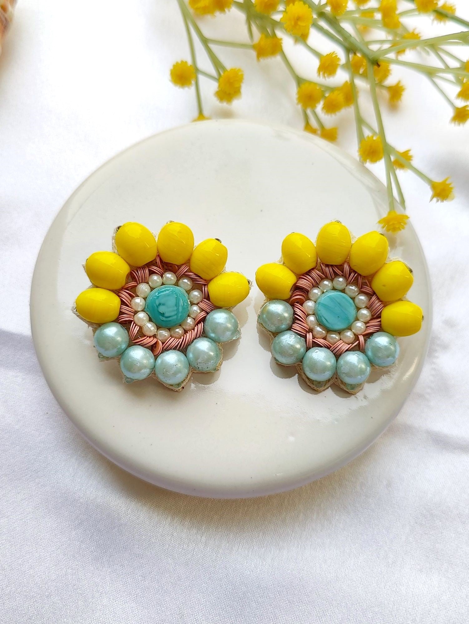 - Blossoming Yellow Bloom: Handcrafted Beaded Stud Earrings