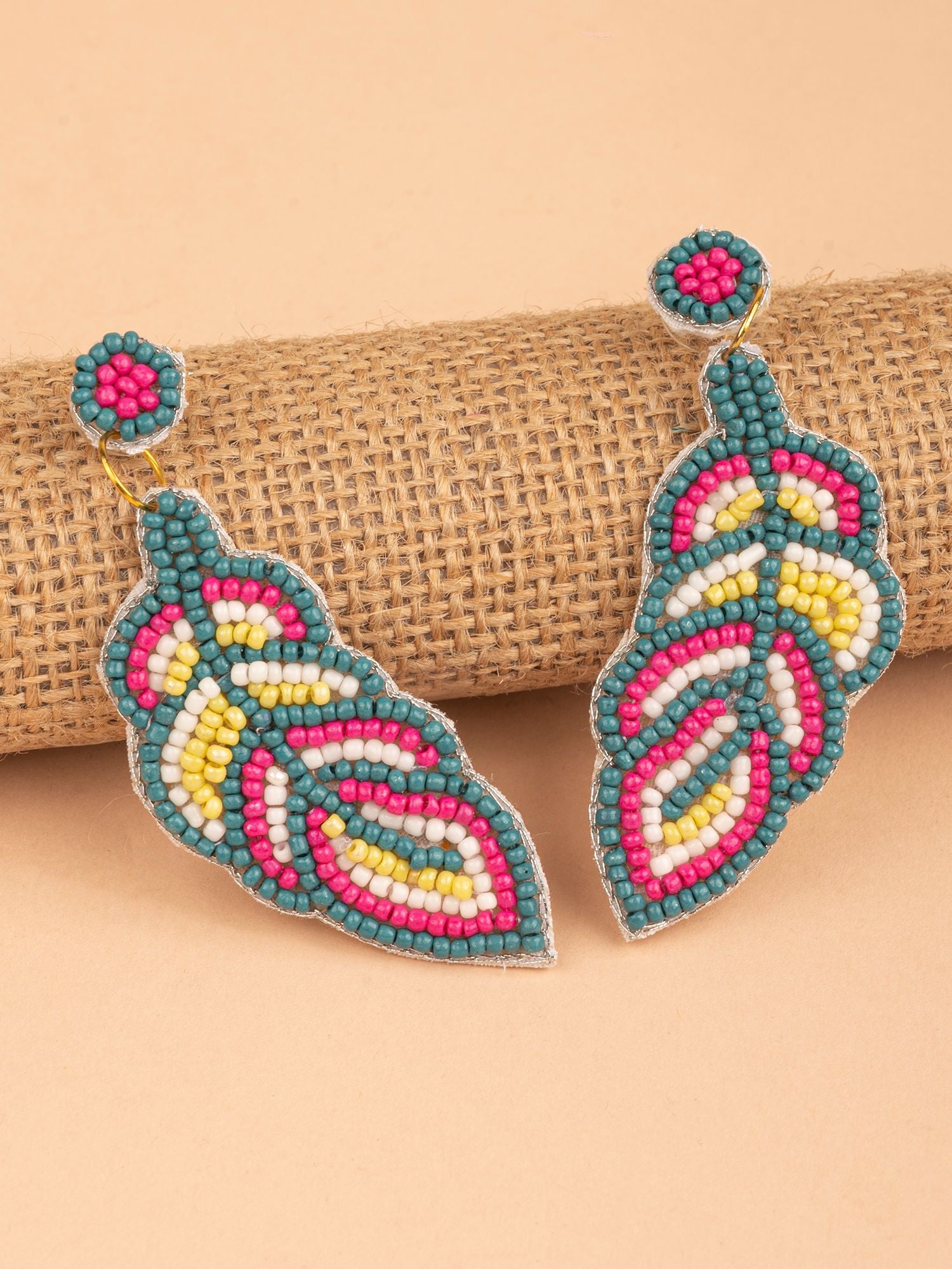 Leafy Allure: Handcrafted Multicolor Beaded Feather Earrings - A Vibrant Statement Piece for Women and Girls