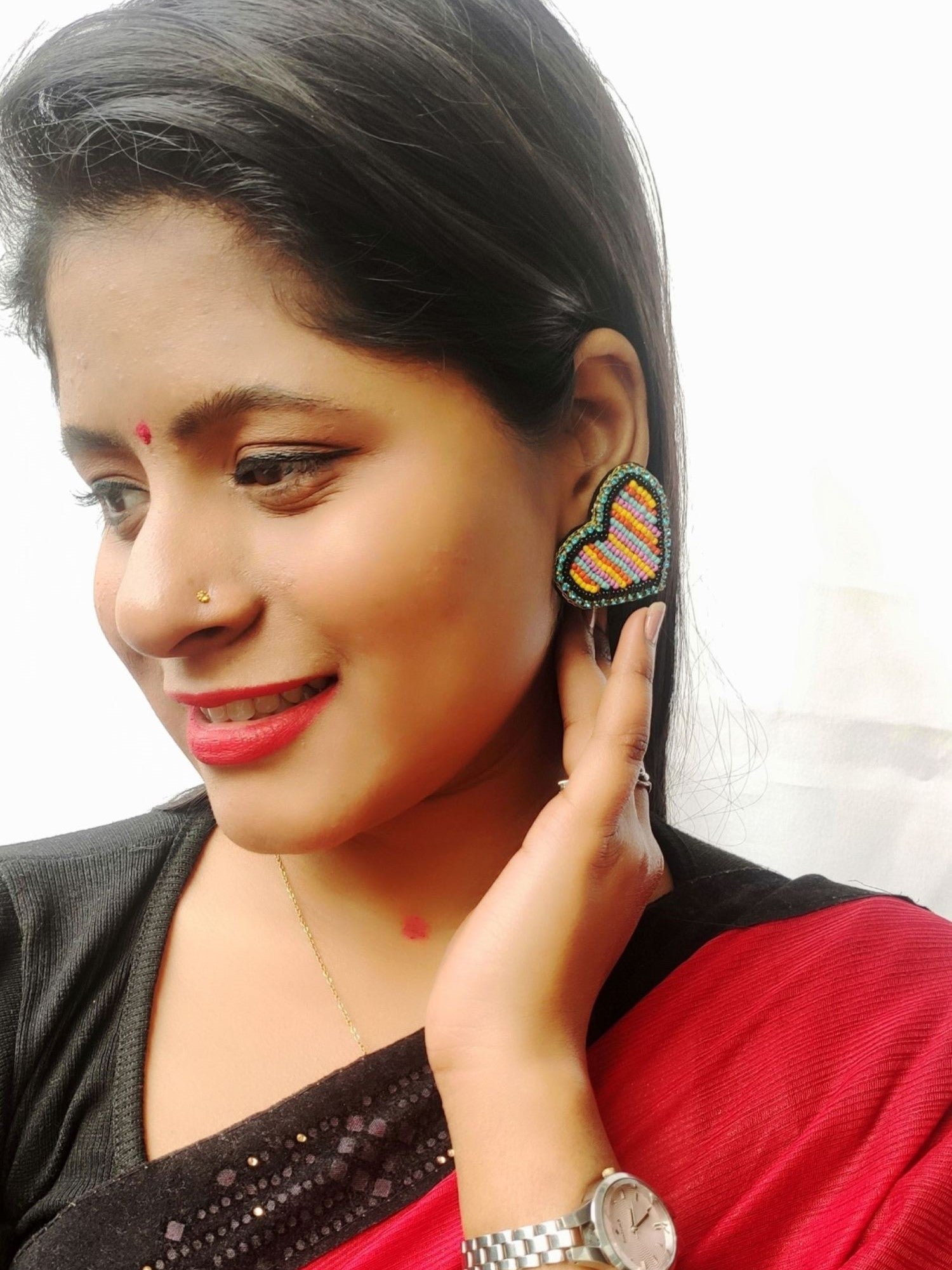 Multicolored Heart Delight: Handmade Beaded Stud Earrings for Women - Perfect Valentine's Day Gift