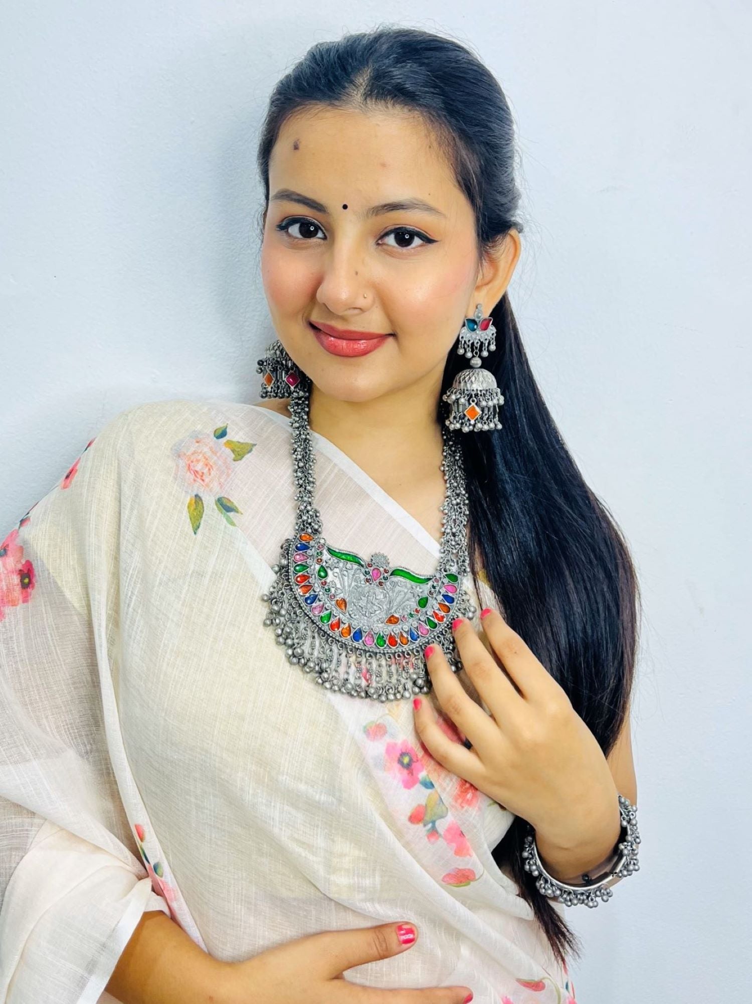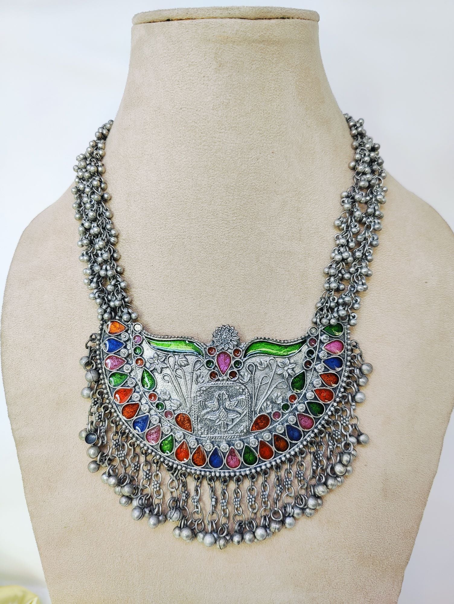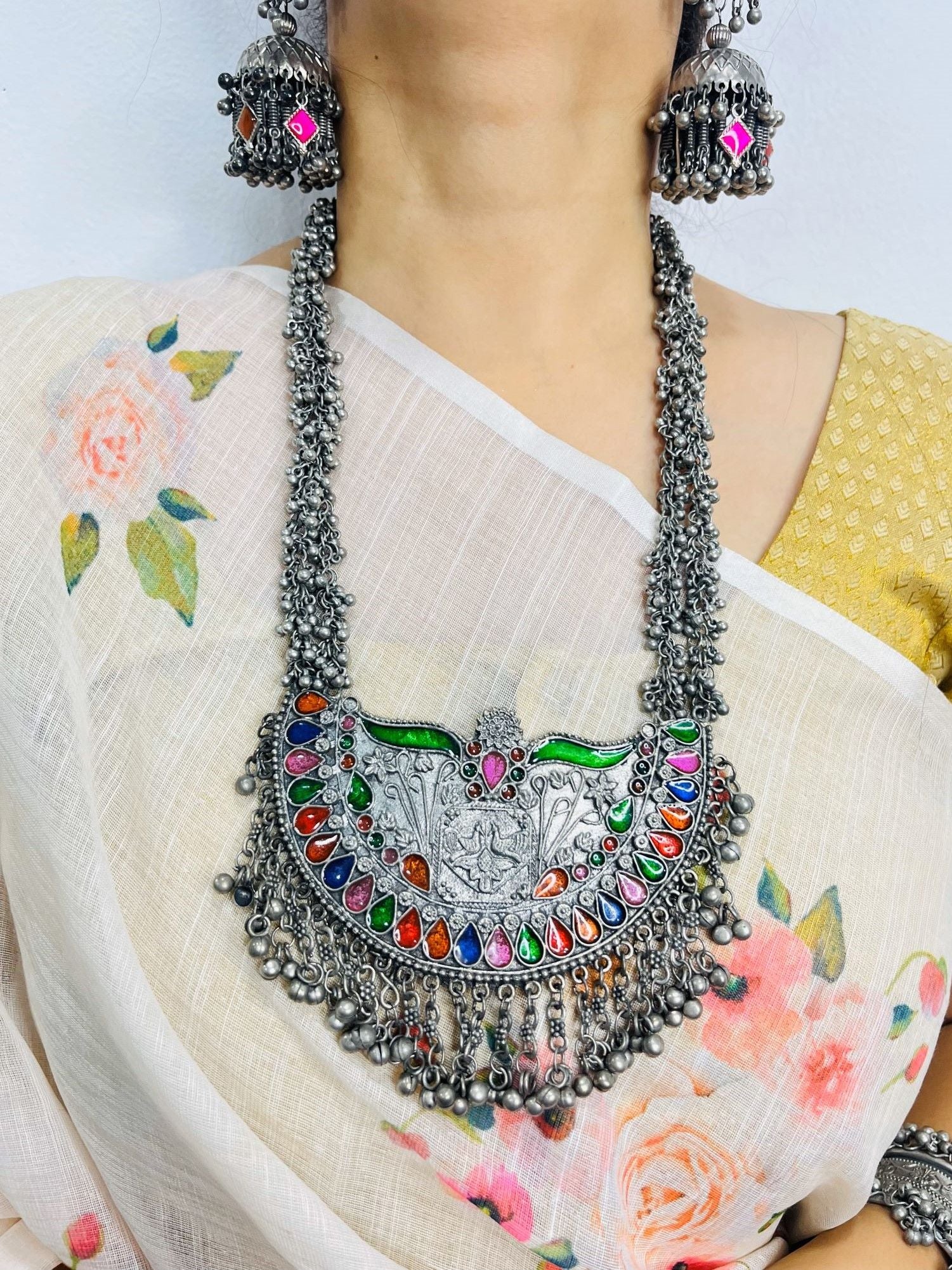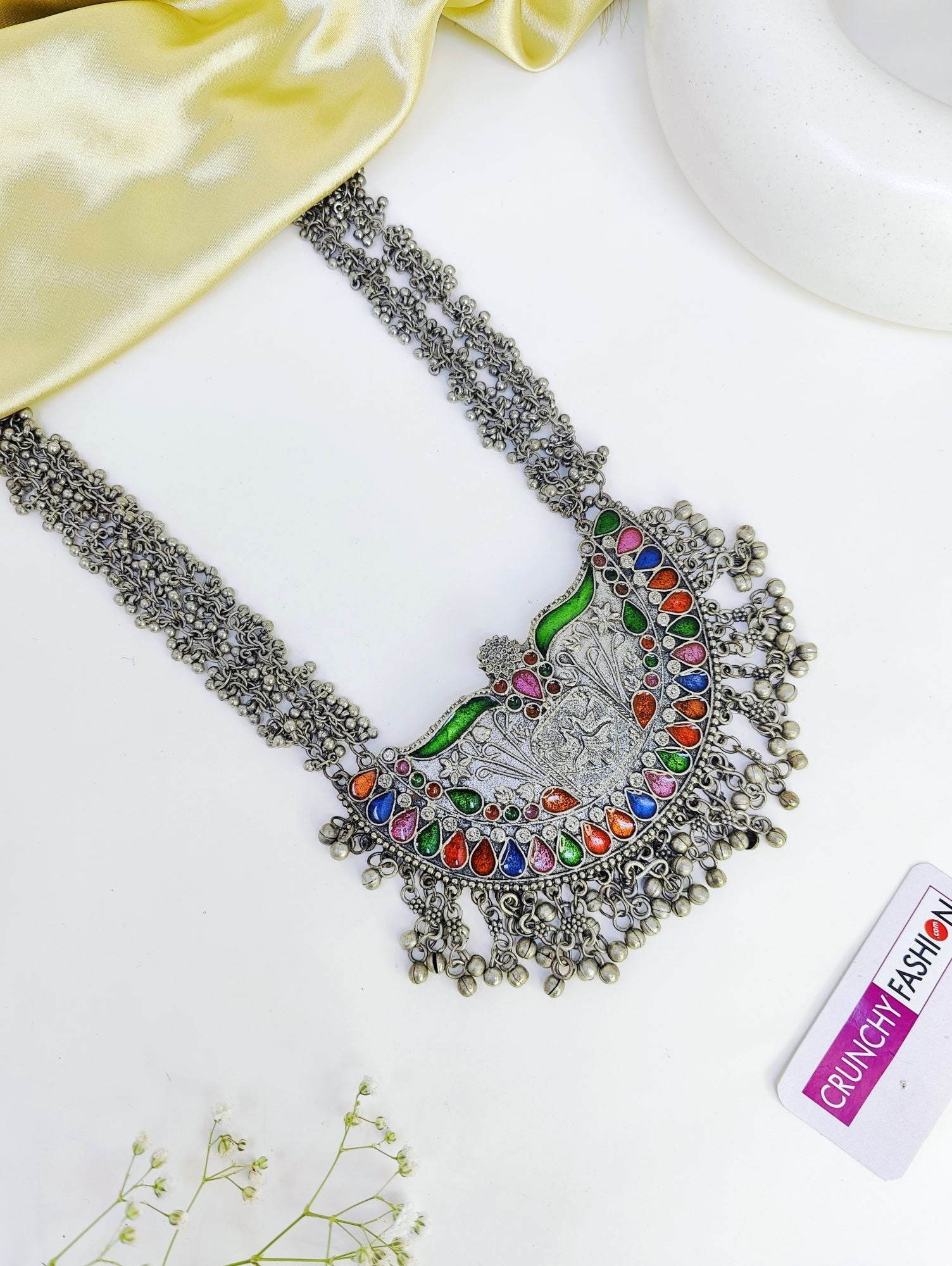 Multicolored Meenakari Work Silver Oxidised Long Necklace for Women