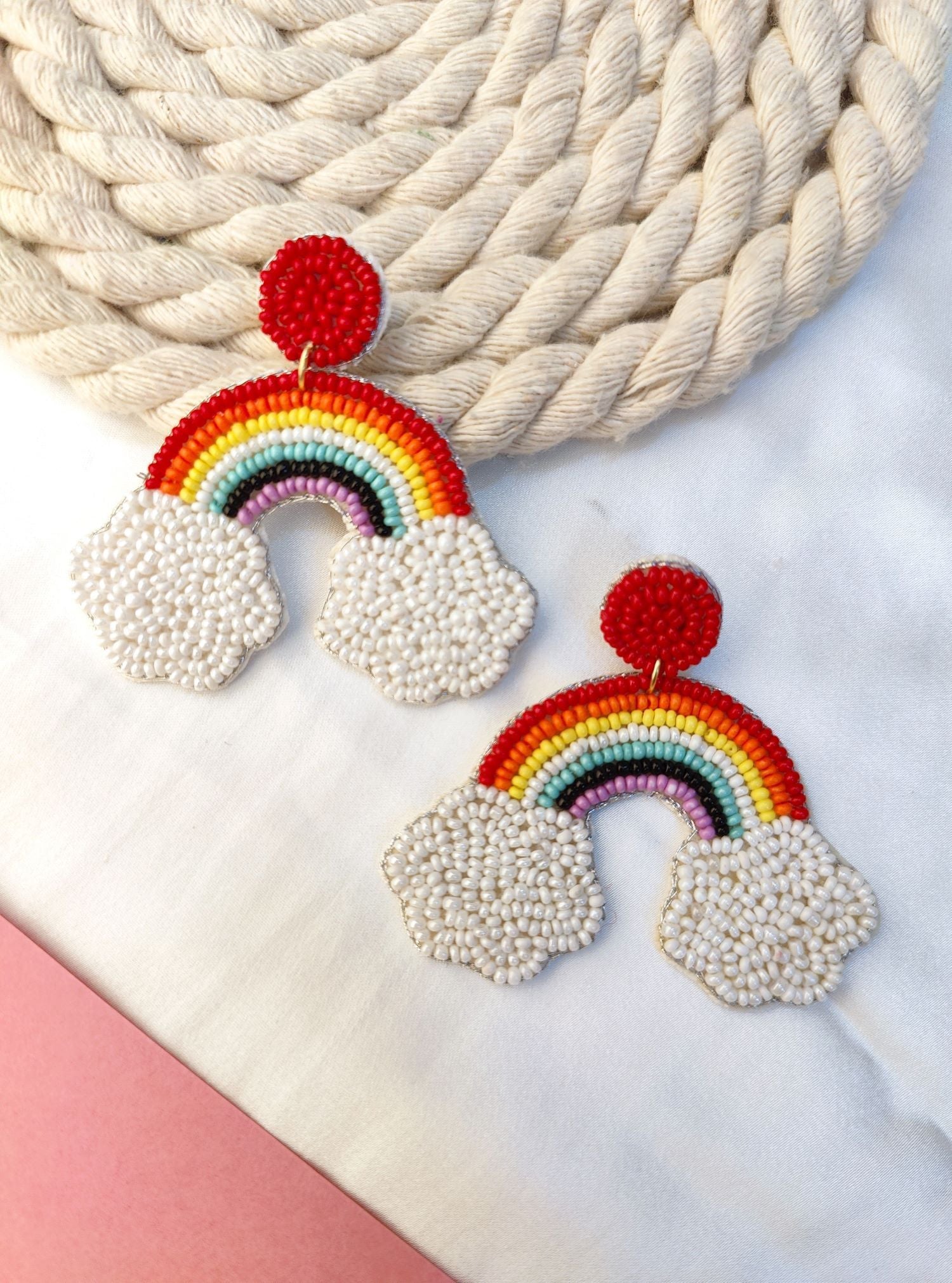 Handmade Rainbow Flair: Light Beaded Drop Earrings for Women and Girls
