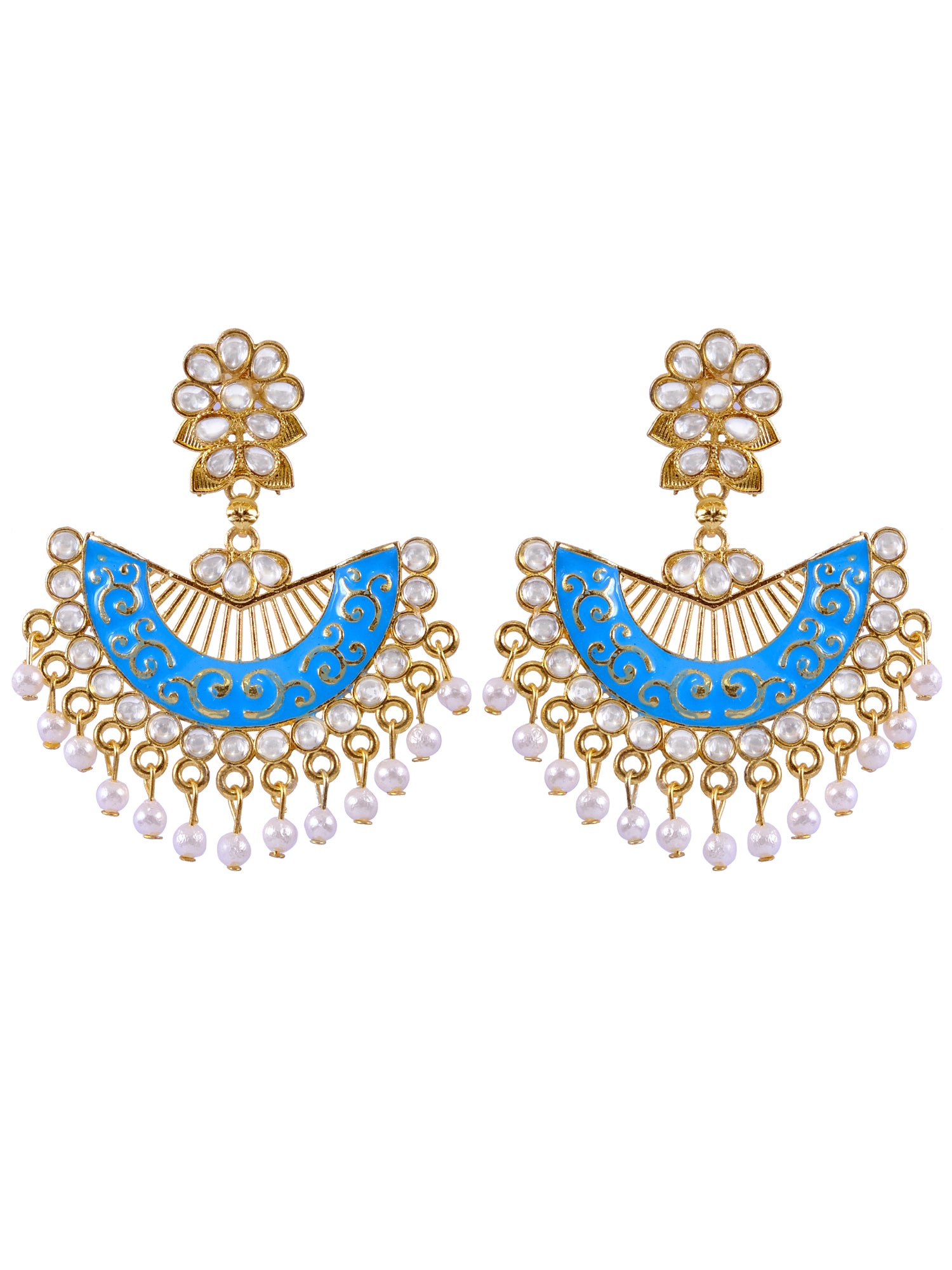 - New Collection Of Chandbali Earrings Gold- Aqua Colour RAE1252