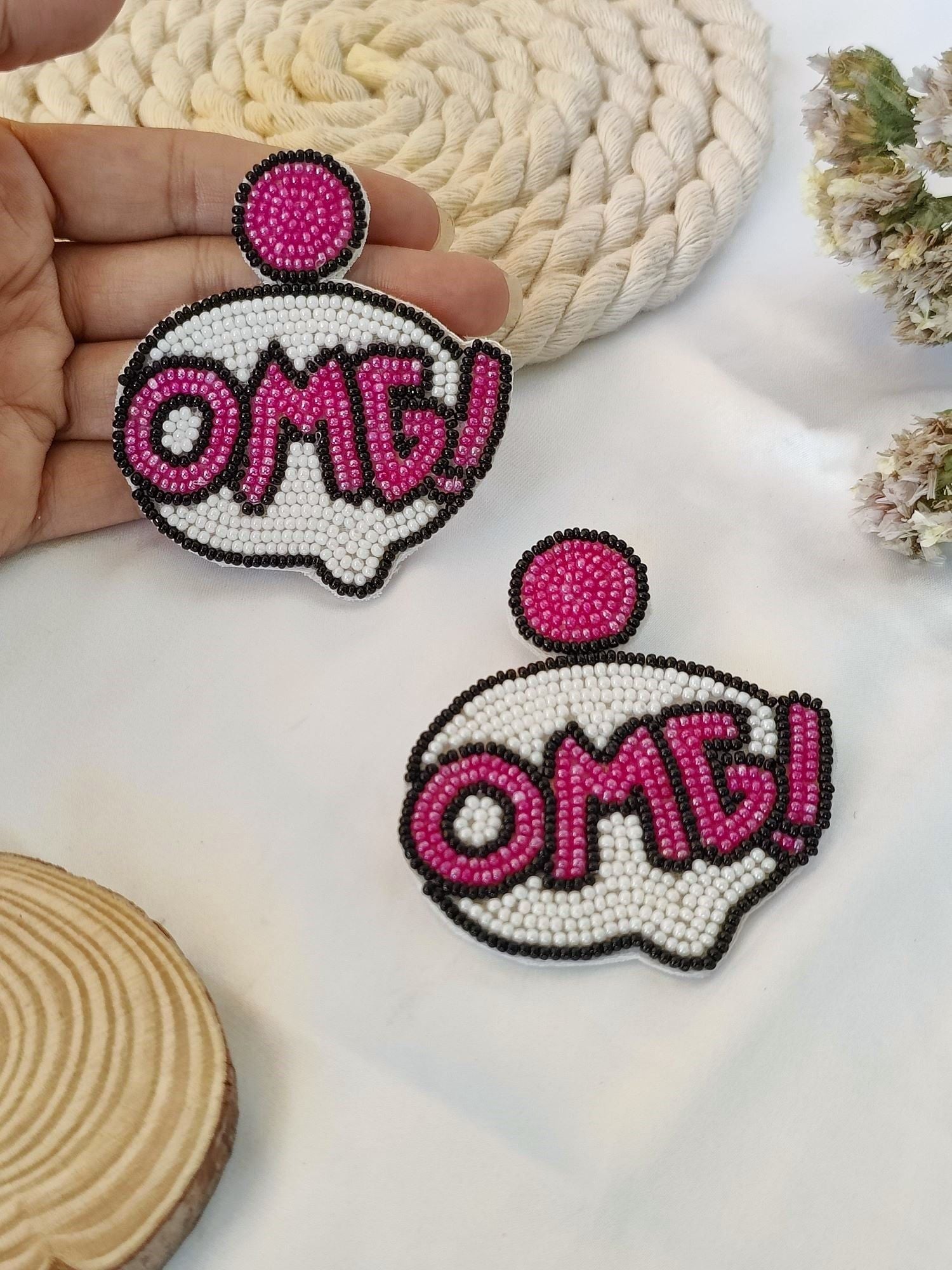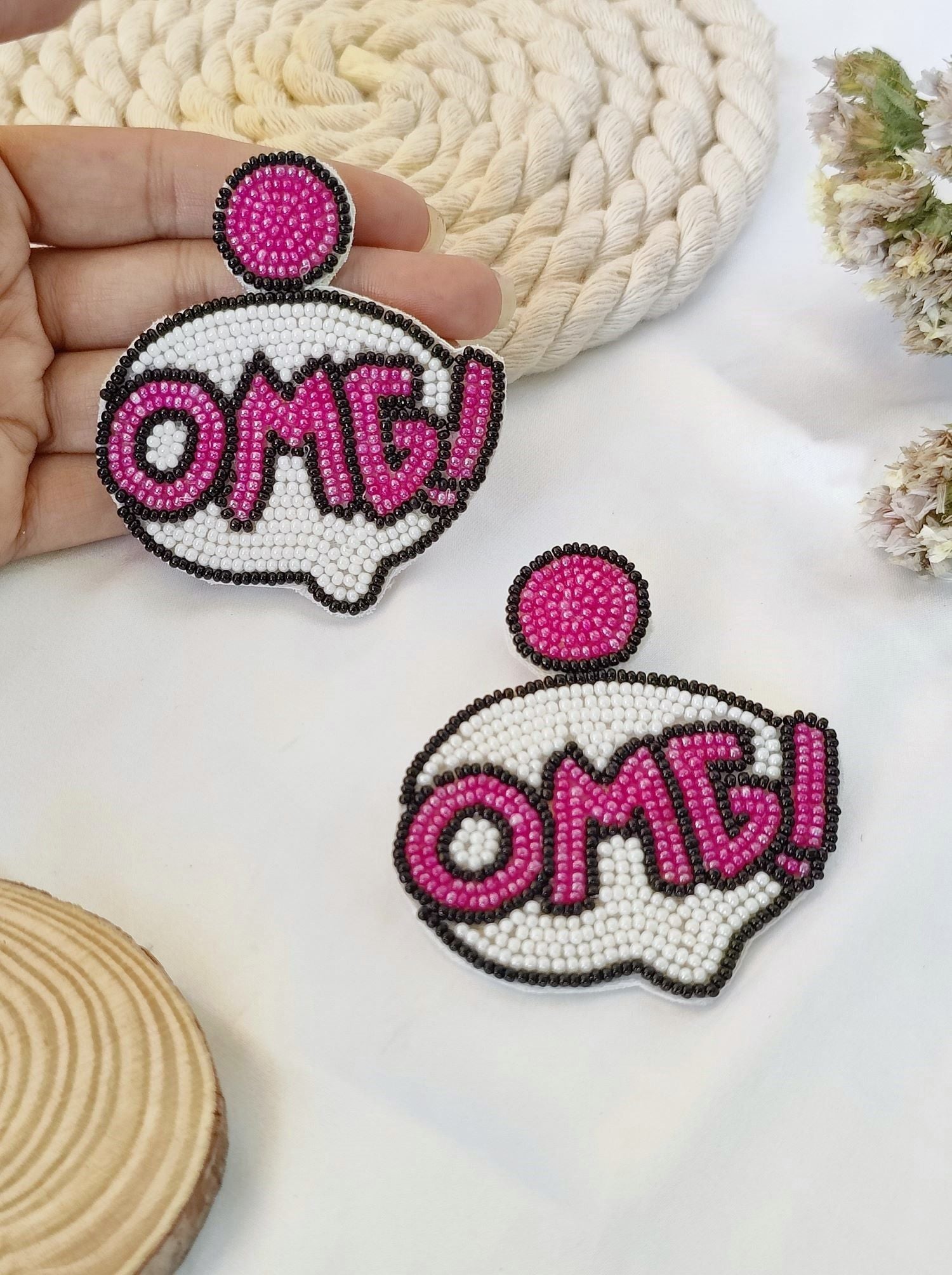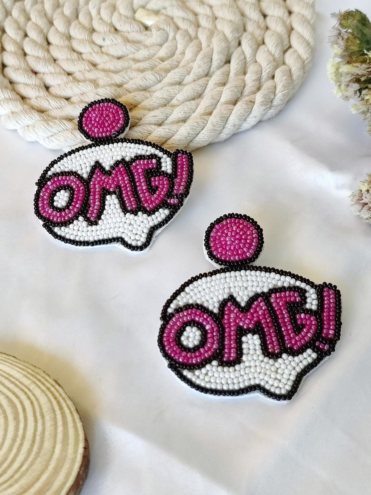 OMG Quirky Beaded Earrings: Handmade Purple-White Jewels for Summer Fun