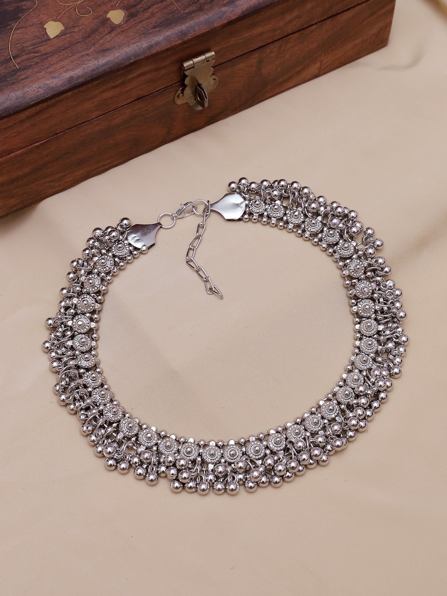 Ethnic Elegance Oxidised Dual-Tone Silver Ghungroo Necklace Set