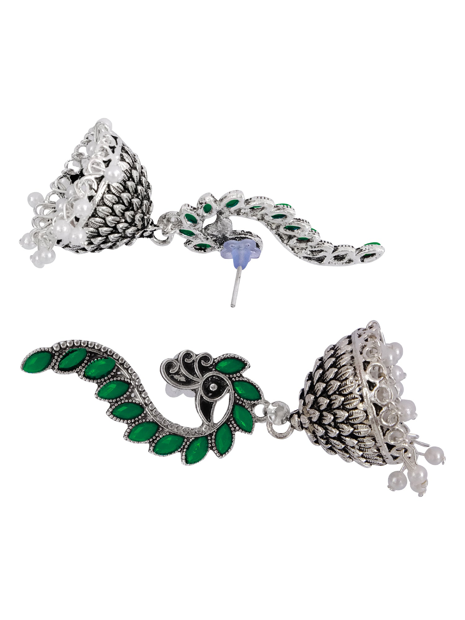 Oxidised German Silver Meenakari Beautiful Green Peacock Design Jhumka Earring RAE0931