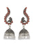 Oxidised Silver Plated Pink Peacock Design Jhumka Earrings for Women