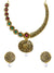 Oxidised Gold-Plated Antique Look Floral Red & Green Stone Necklace Set With Earrings RAS0262