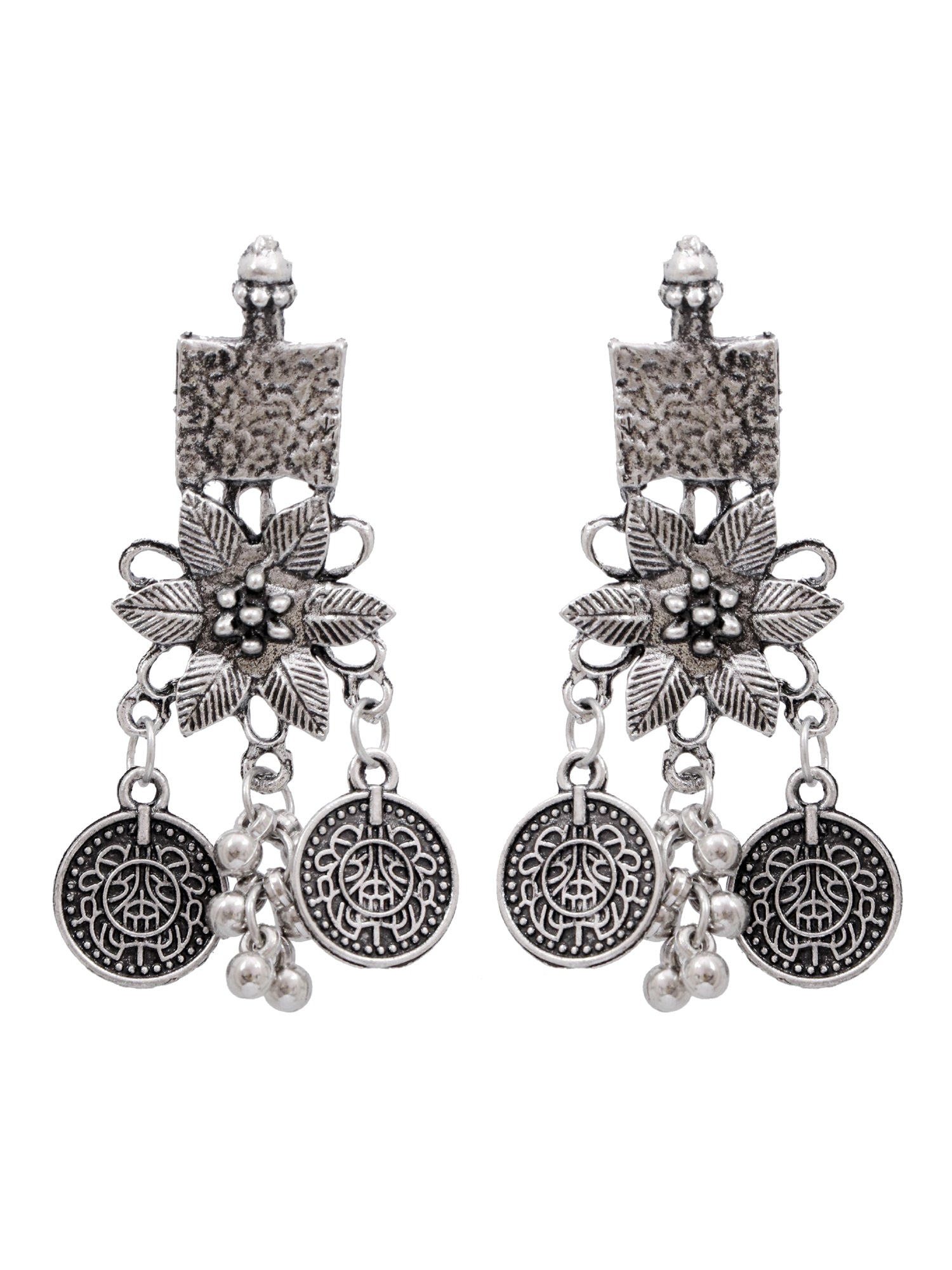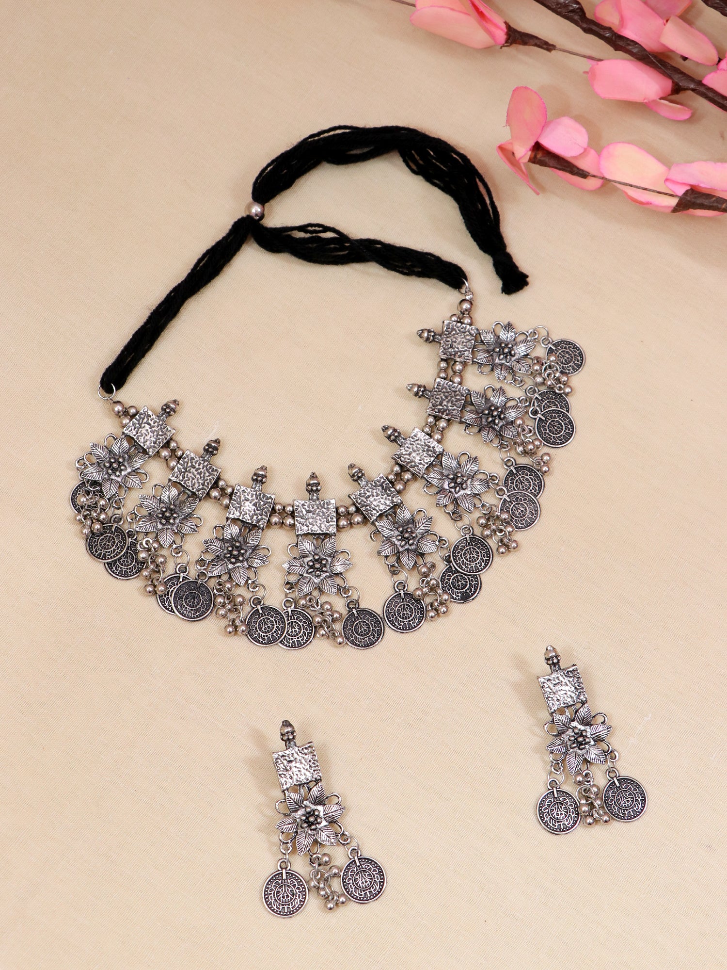 - Glamorous Oxidized Silver Coin Choker Jewelry Set for Women and Girls
