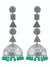 Boho-Kissed Antique Oxidised Silver Pearl Jhumkas with Green Drops for Chic Feminine Flair