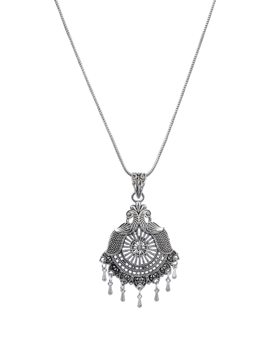 German Silver Peacock Pendant Necklace - Magnificent Oxidized Antique Design for Women