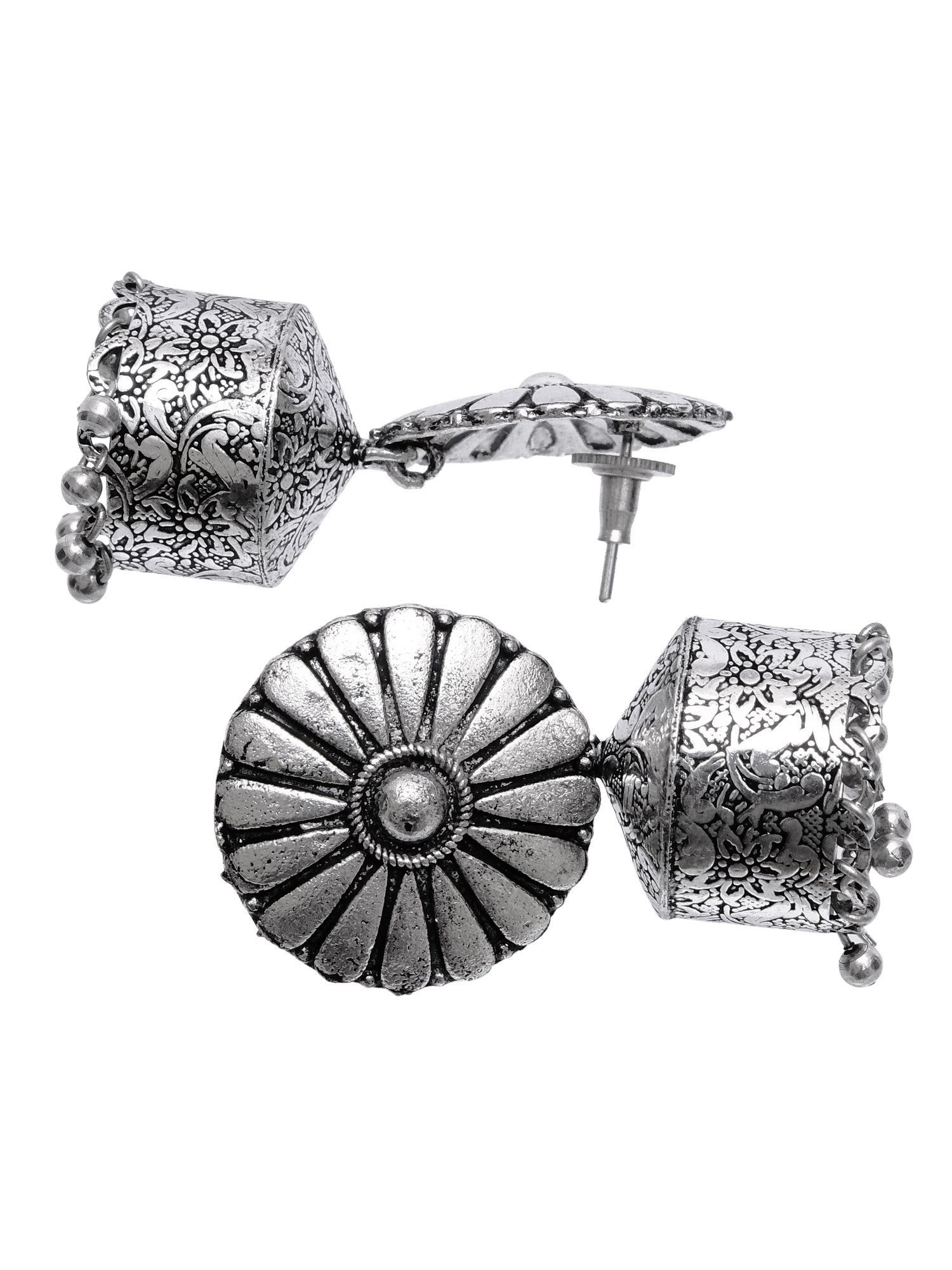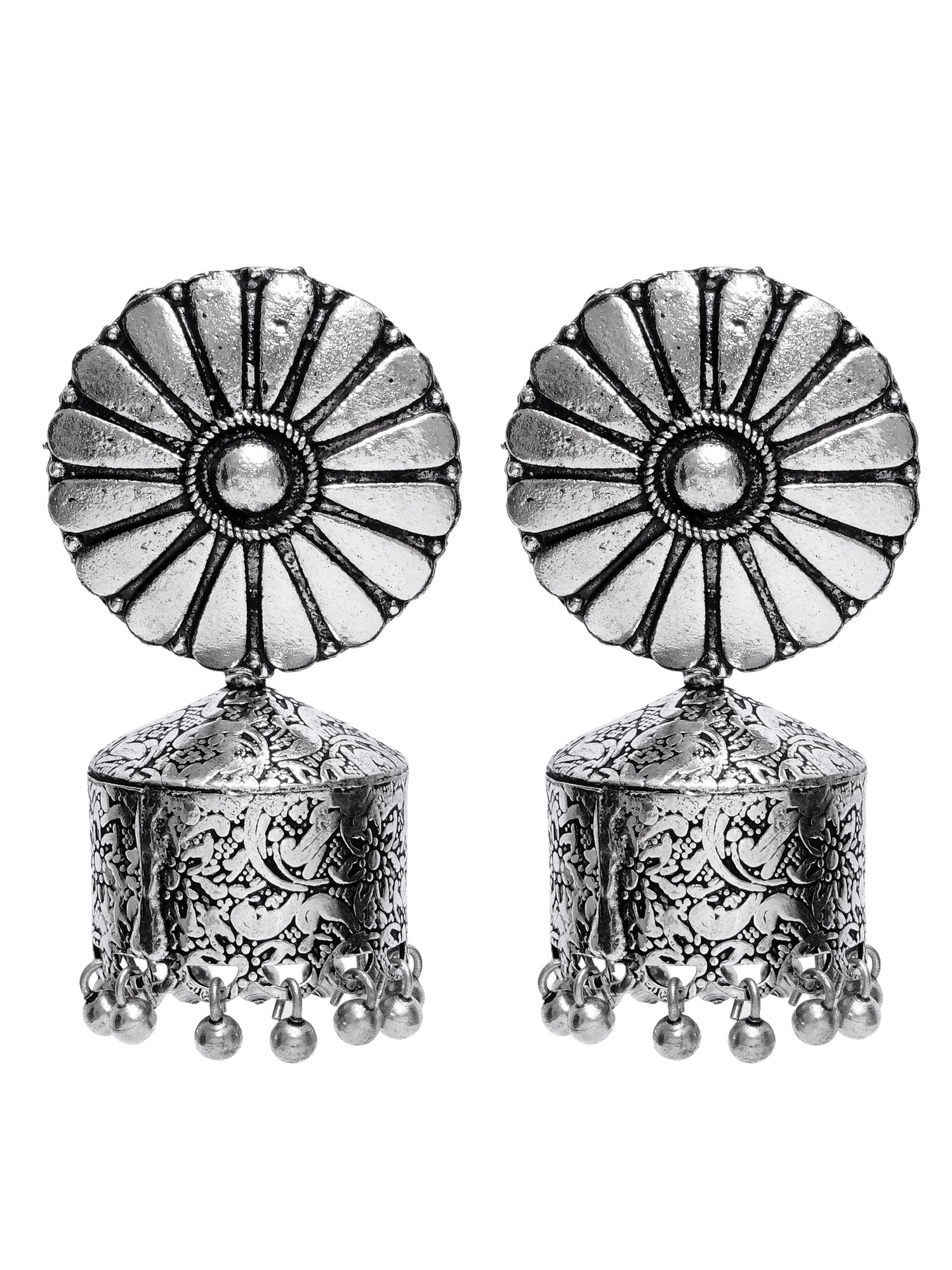 - Oxidised German Silver Jhumka Earrings for Women, Antique Design, RAE0658
