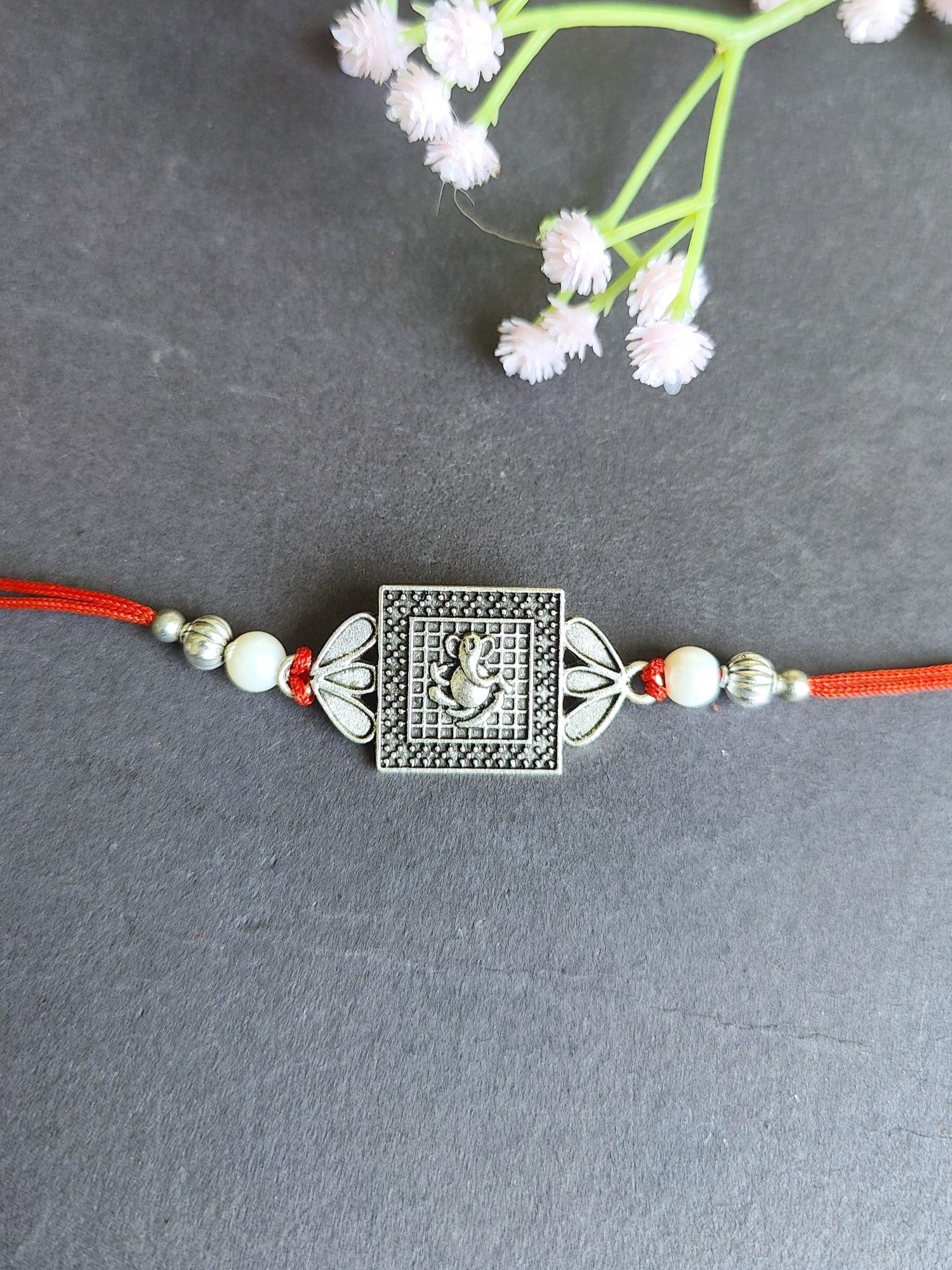 Oxidised Silver Ganpati Rakhi for Brother