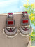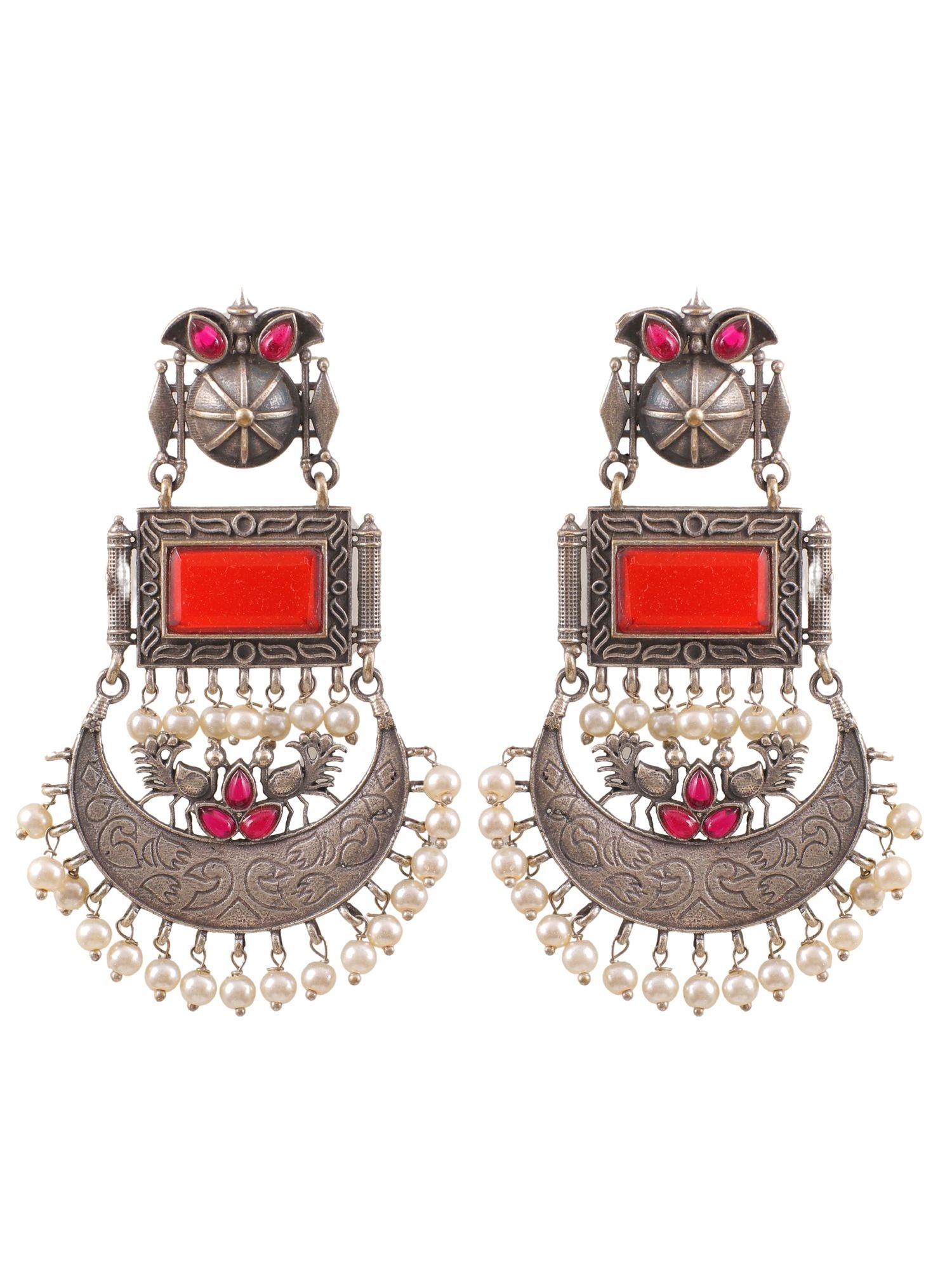 Exquisite Maroon Festive Bliss: Oxidized Silver Look-Alike Statement Earrings with Vibrant Red Stones