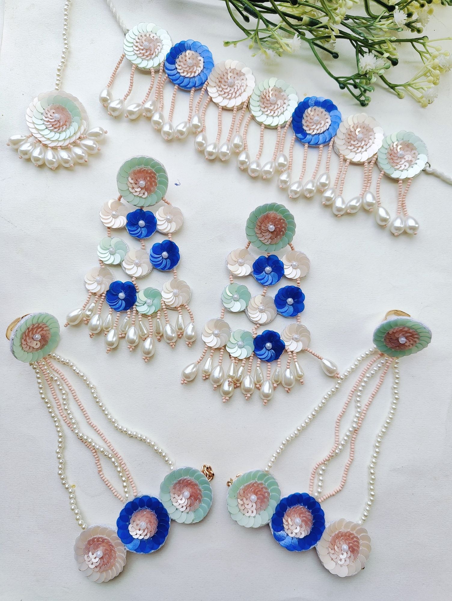 Peach-Mint Green Beaded Floral Choker Set: Handmade Haldi-Mehndi Treasure