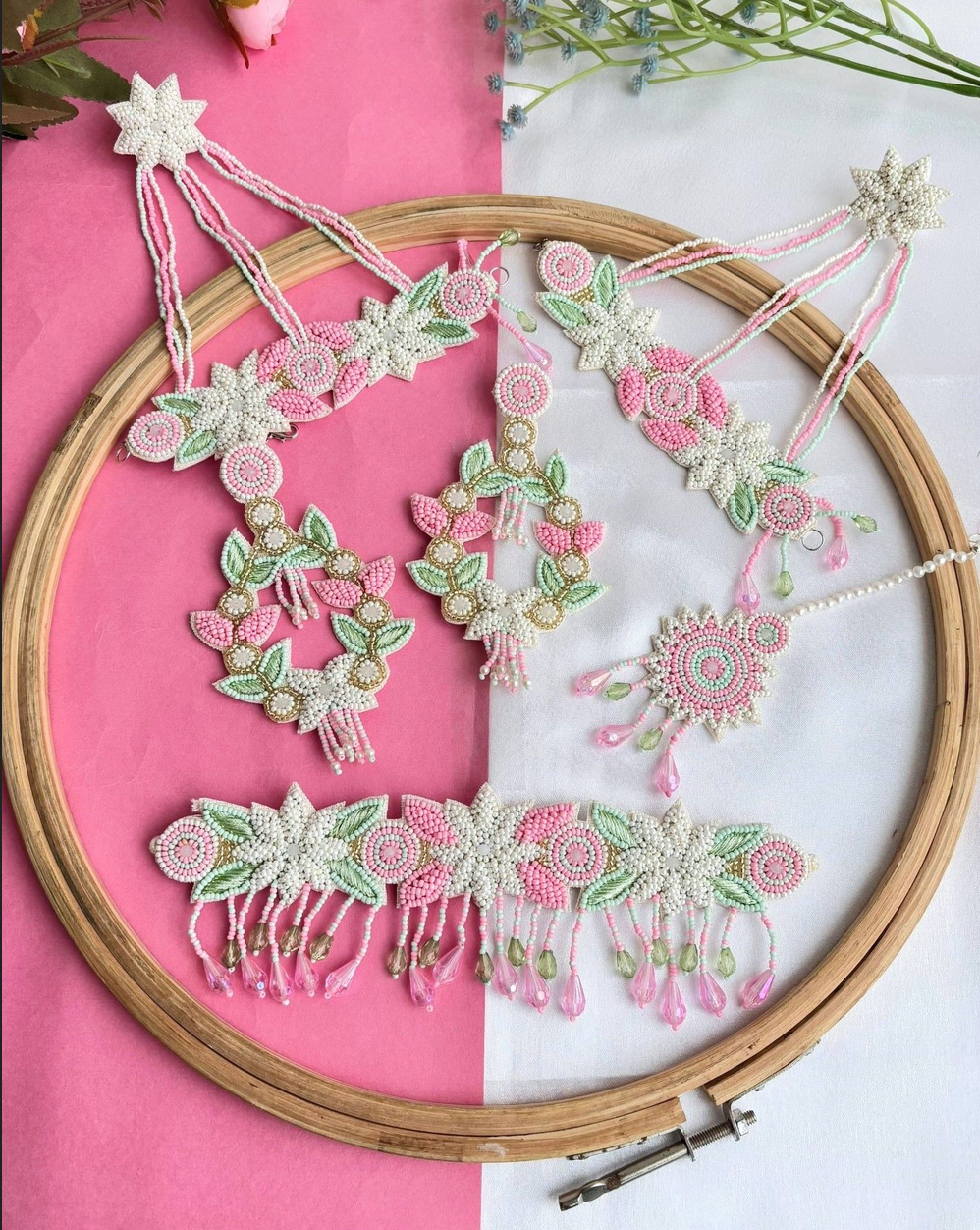 Pastel Garden Handmade Floral Jewellery Set for Haldi-Mehndi