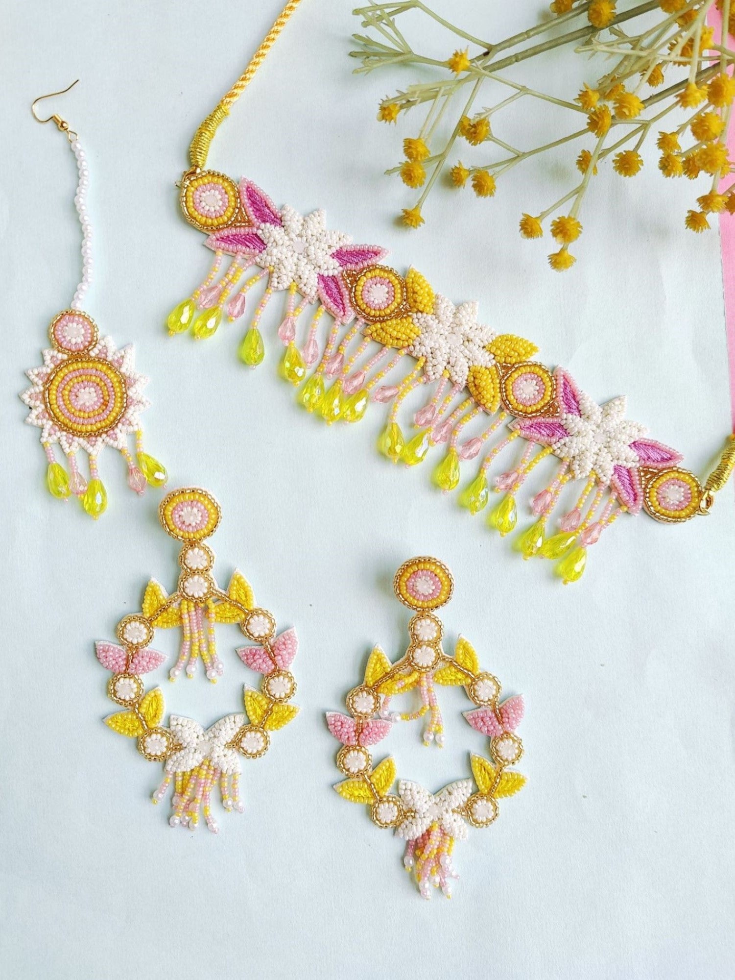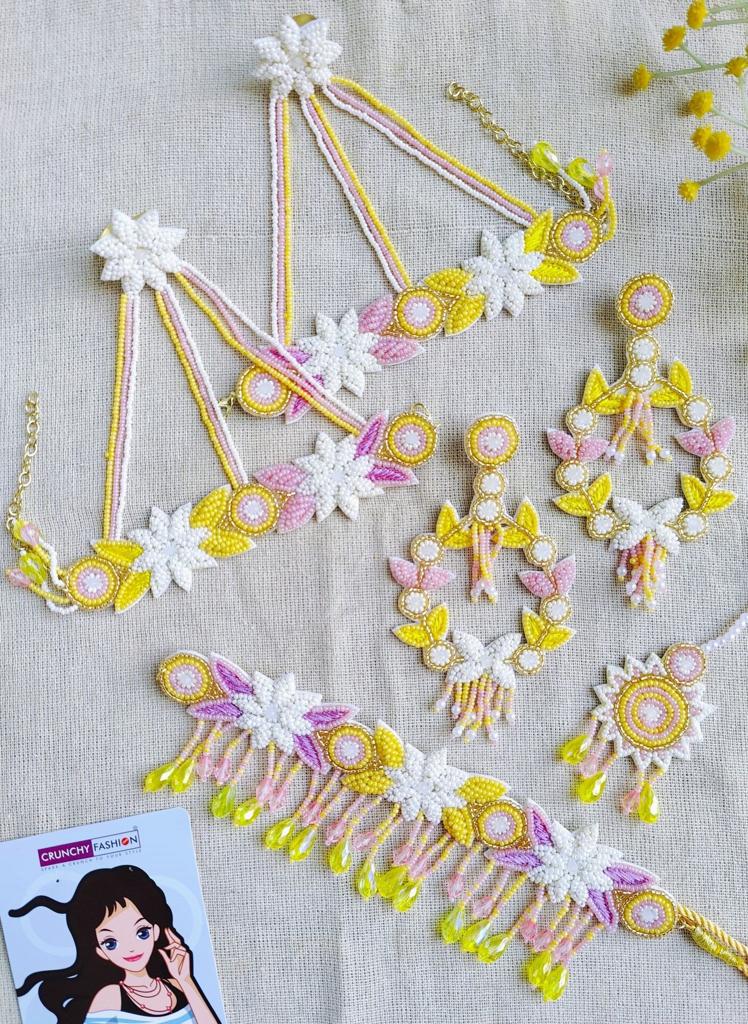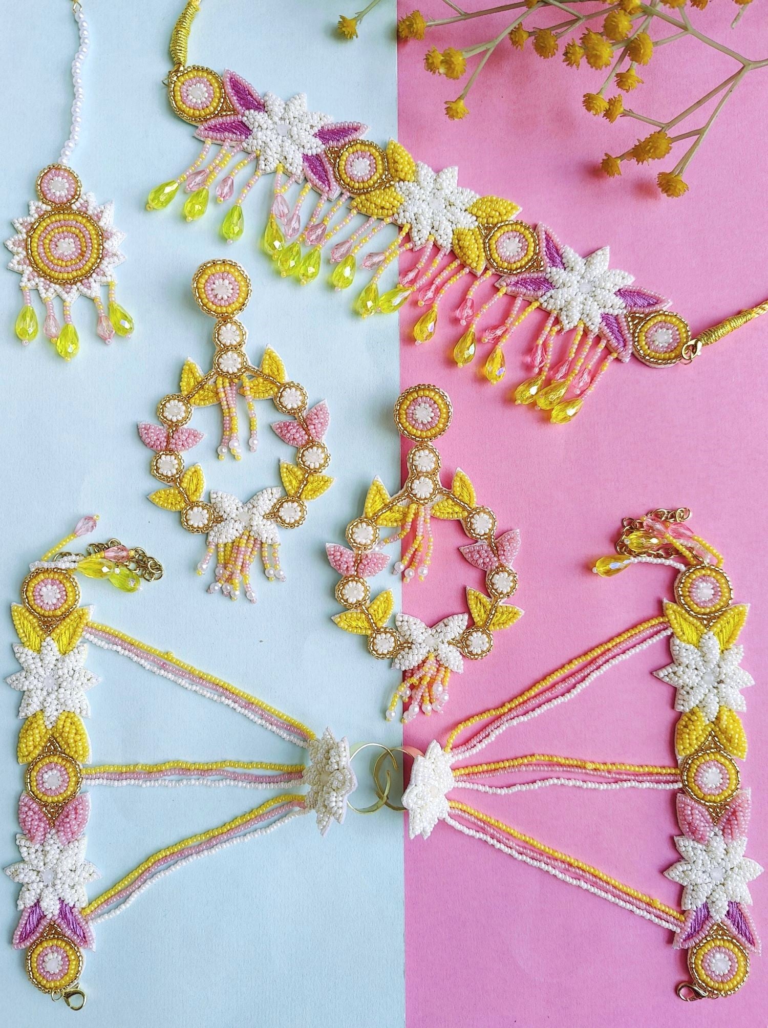 Pastel Yellow-Baby Pink Designer FloralHandmade Bridal Set for Haldi-Mehndi