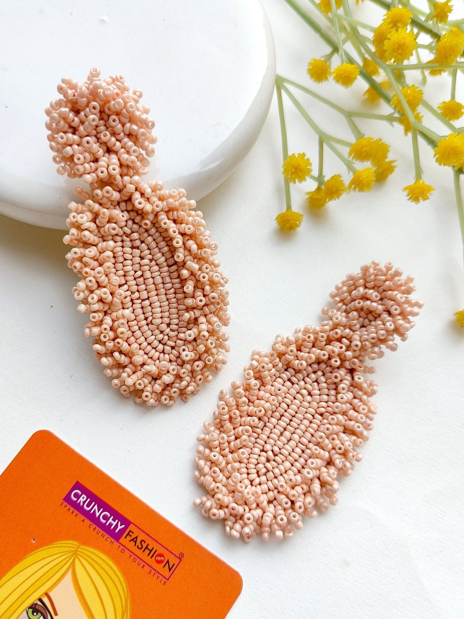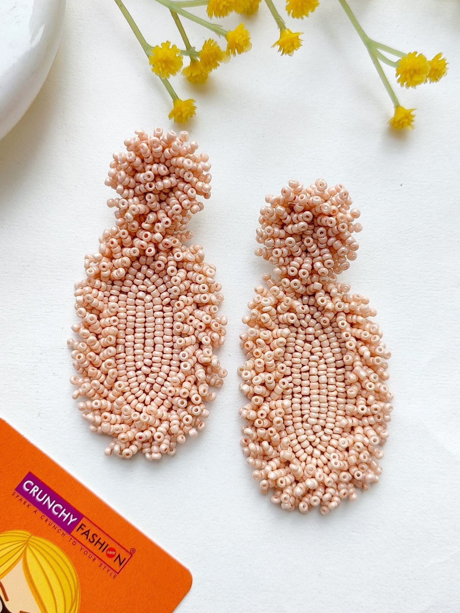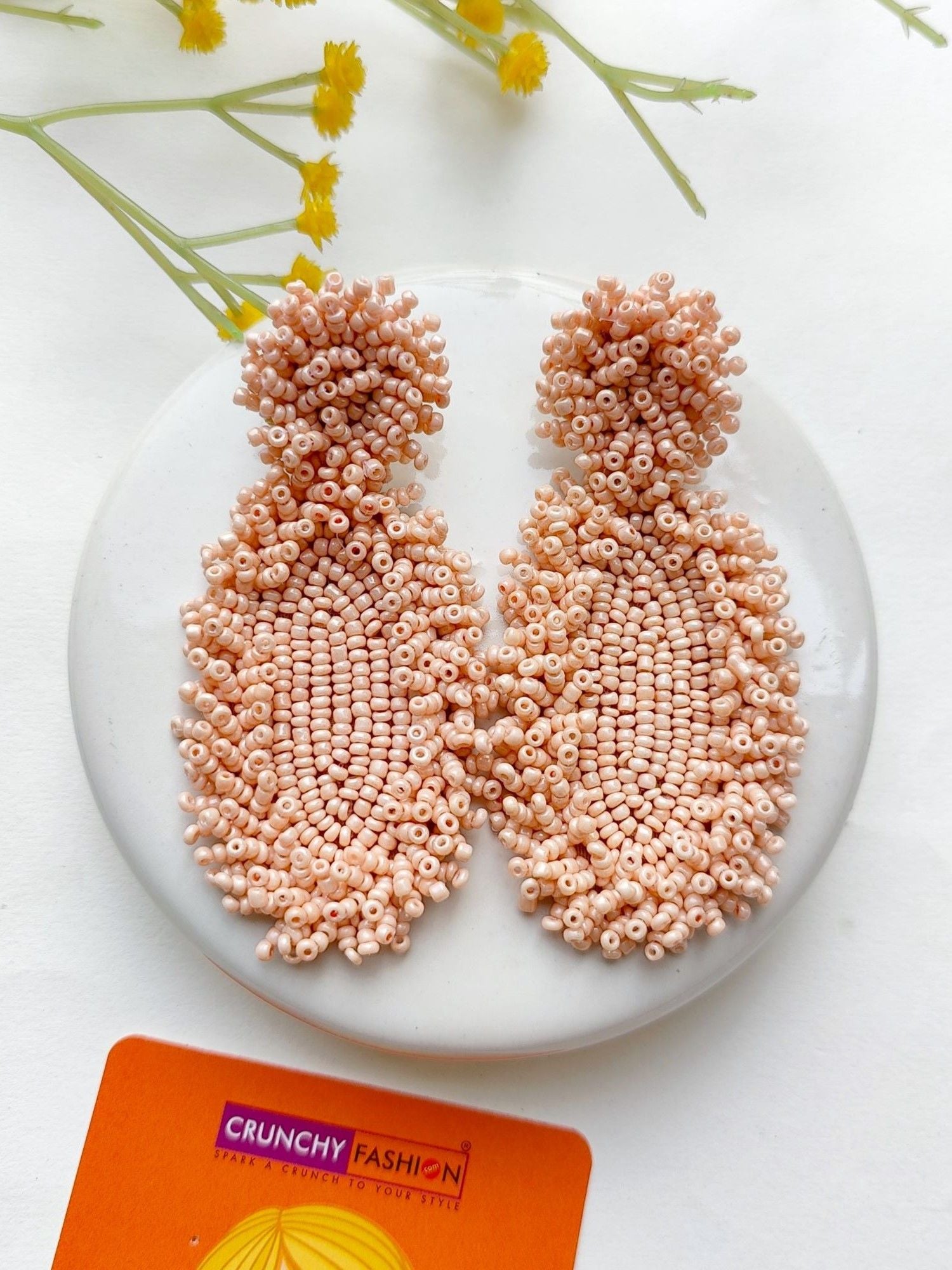 - Peachy Elegance: Handcrafted Beaded Dangler Earrings for Chic Fashionistas
