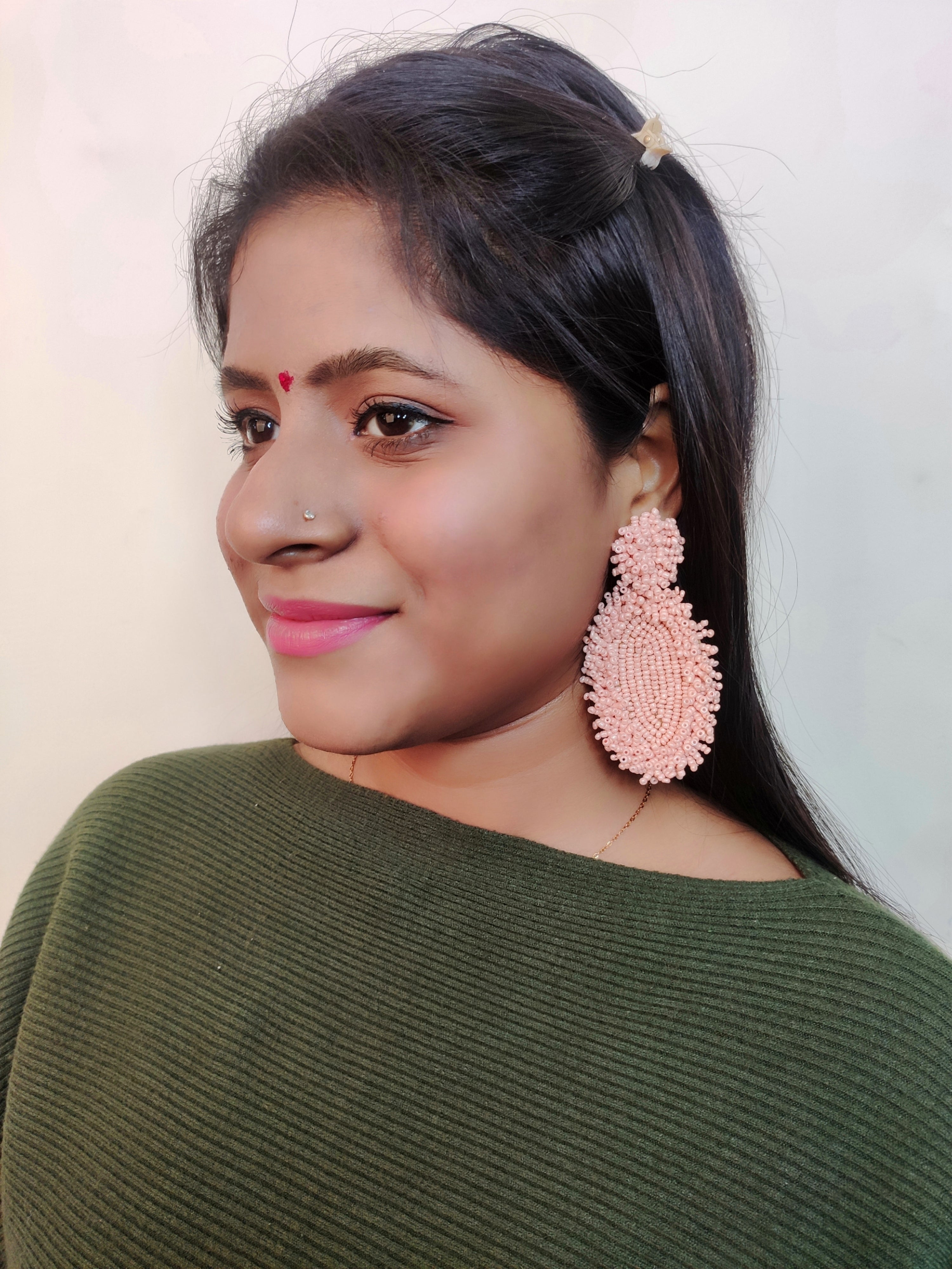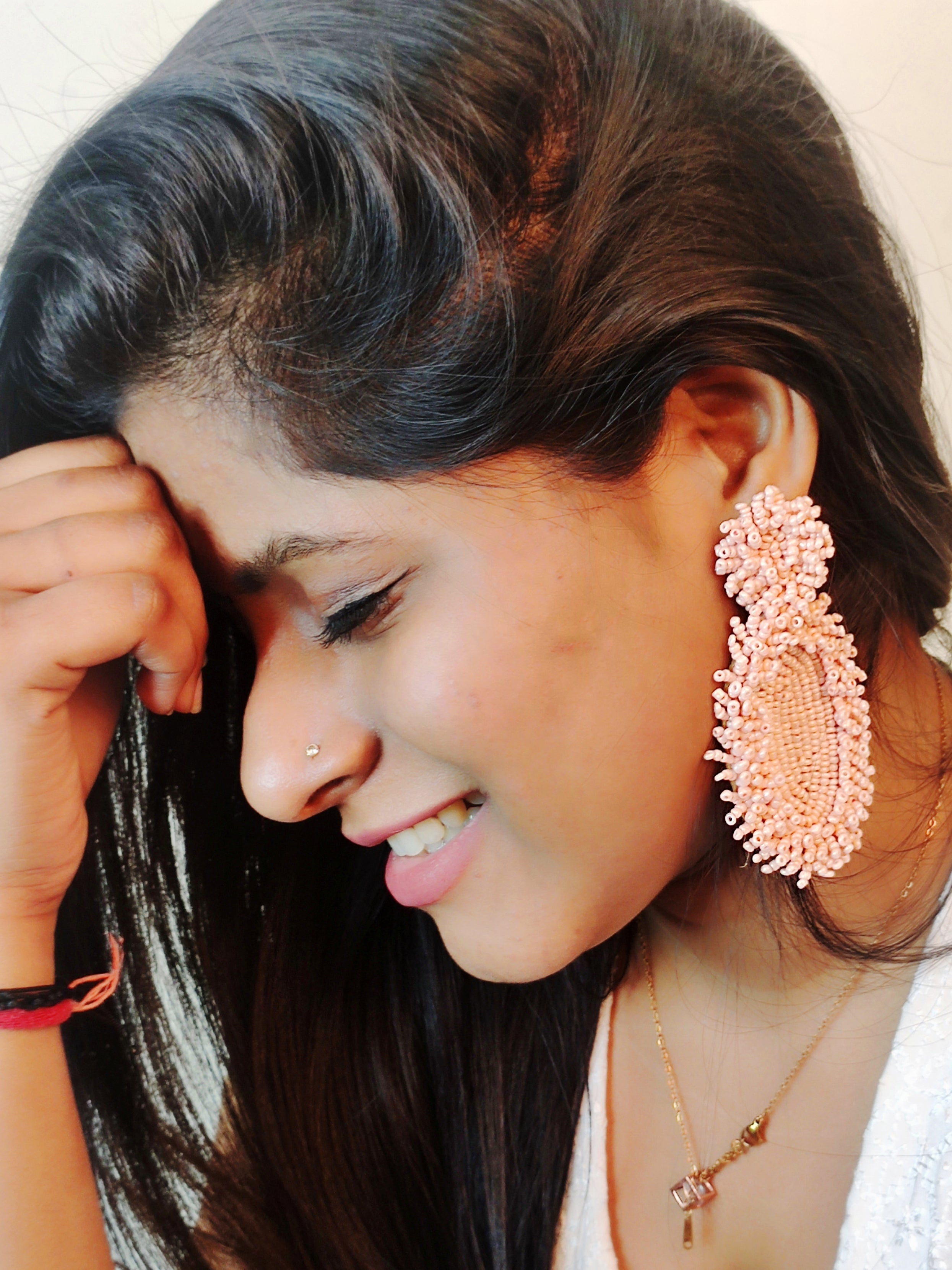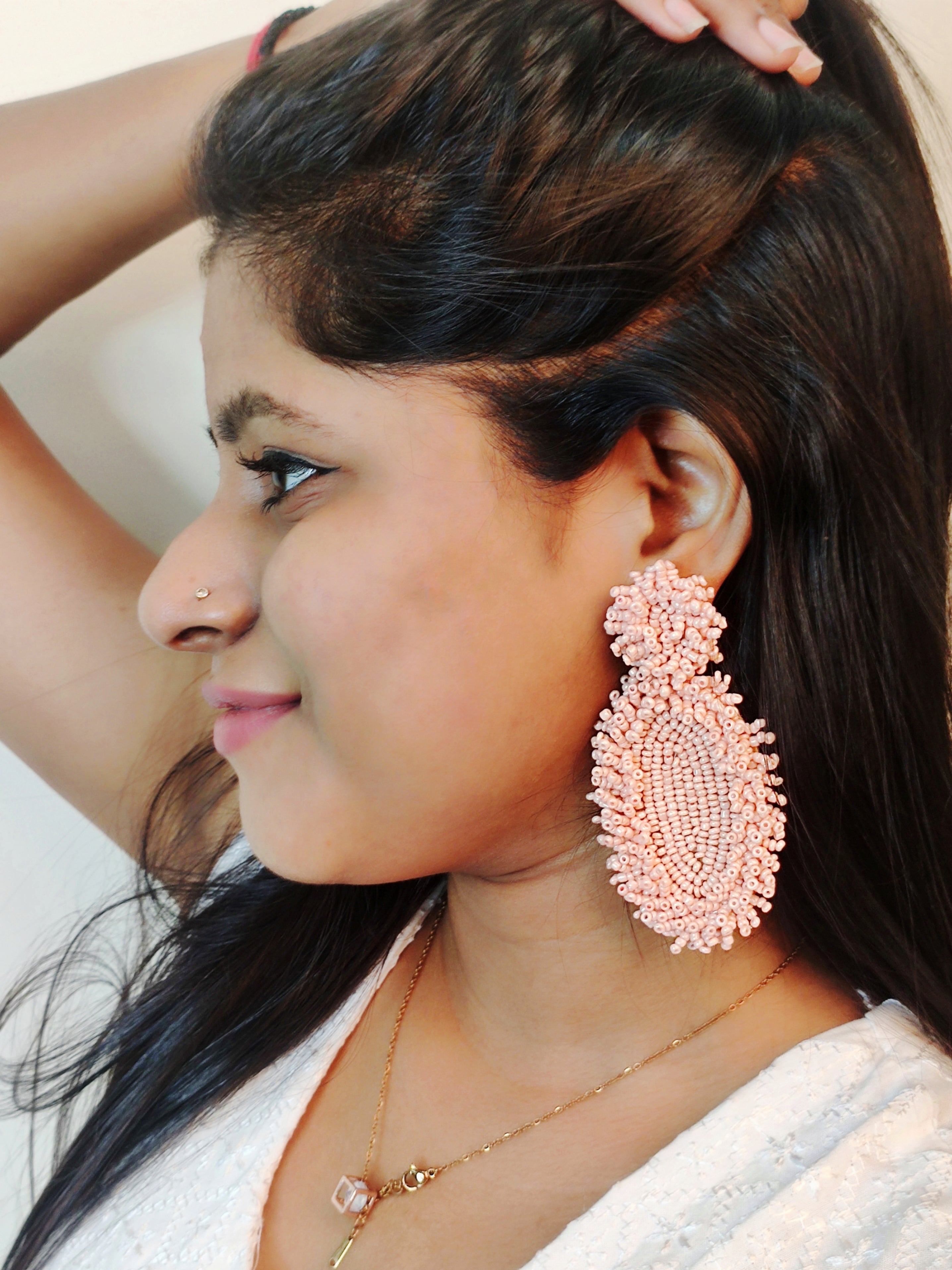 - Peachy Elegance: Handcrafted Beaded Dangler Earrings for Chic Fashionistas