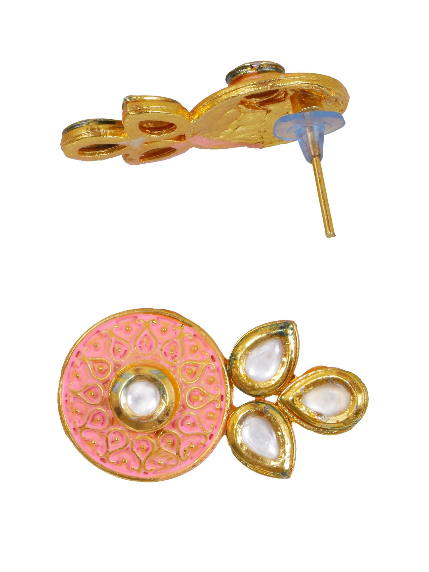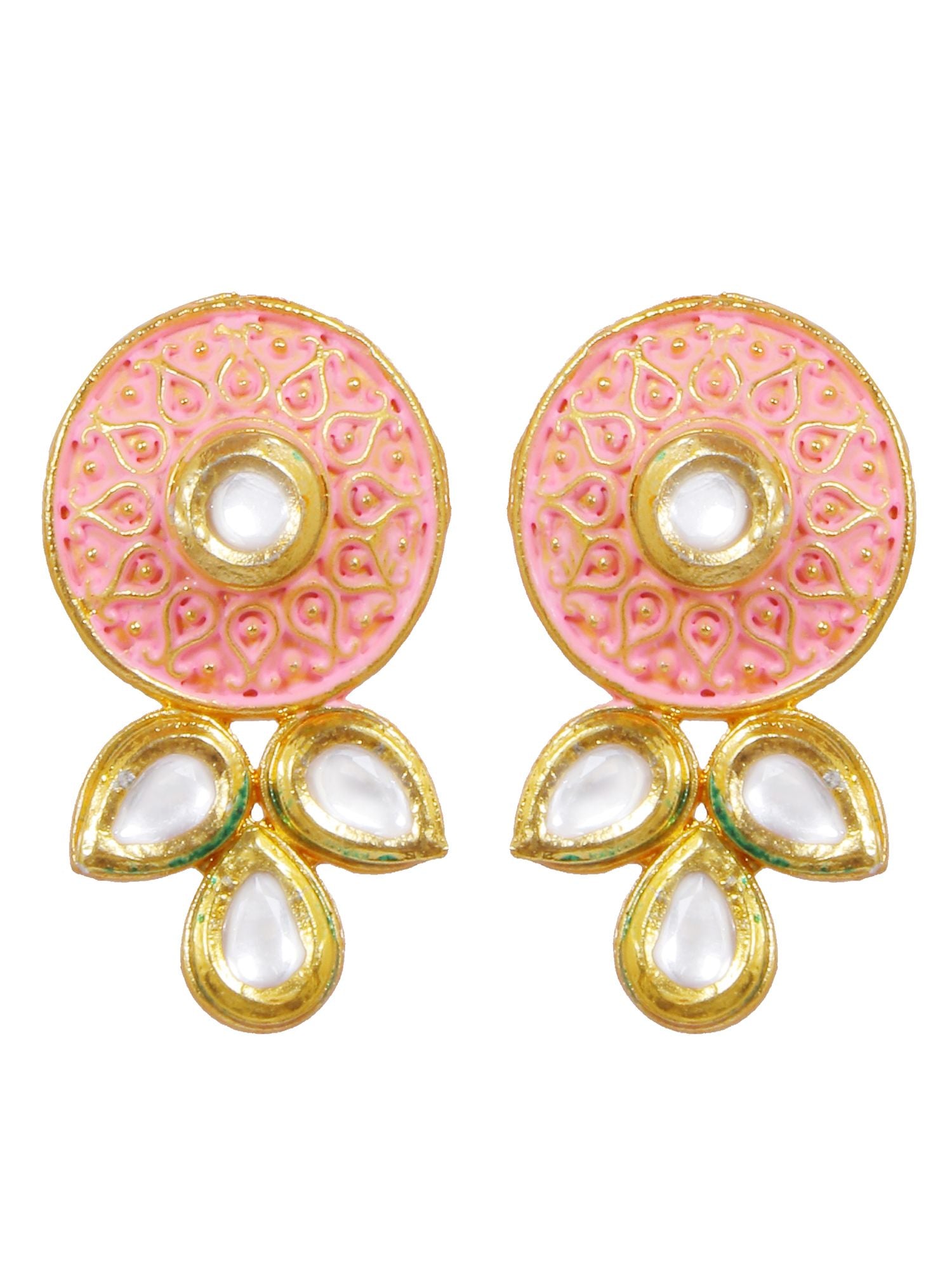 Peach Meenakari Kundan & Pearl Choker Necklace Set for Women