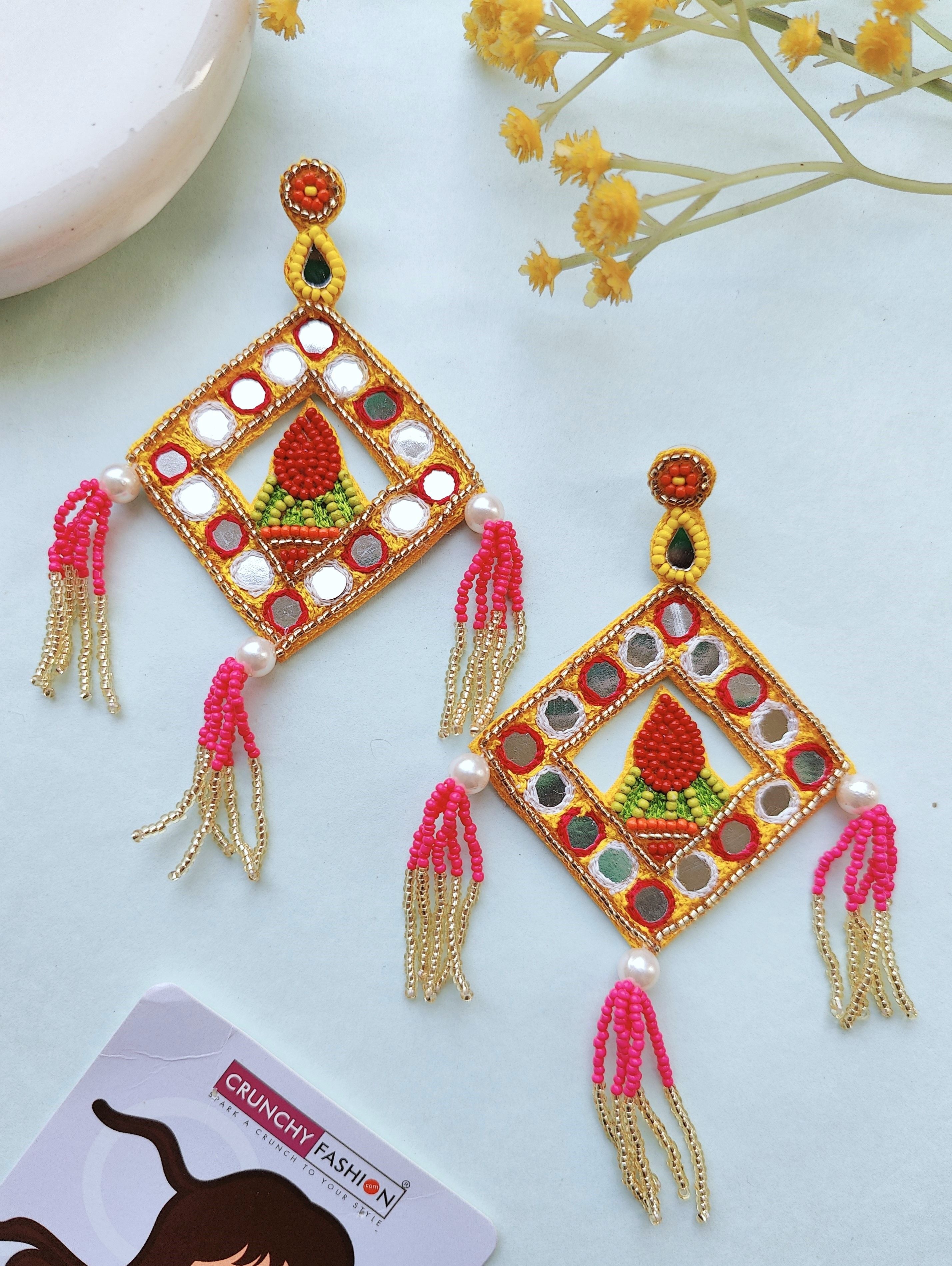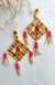 Fusion Delight: Pink-Yellow Long Handmade Beaded Earrings