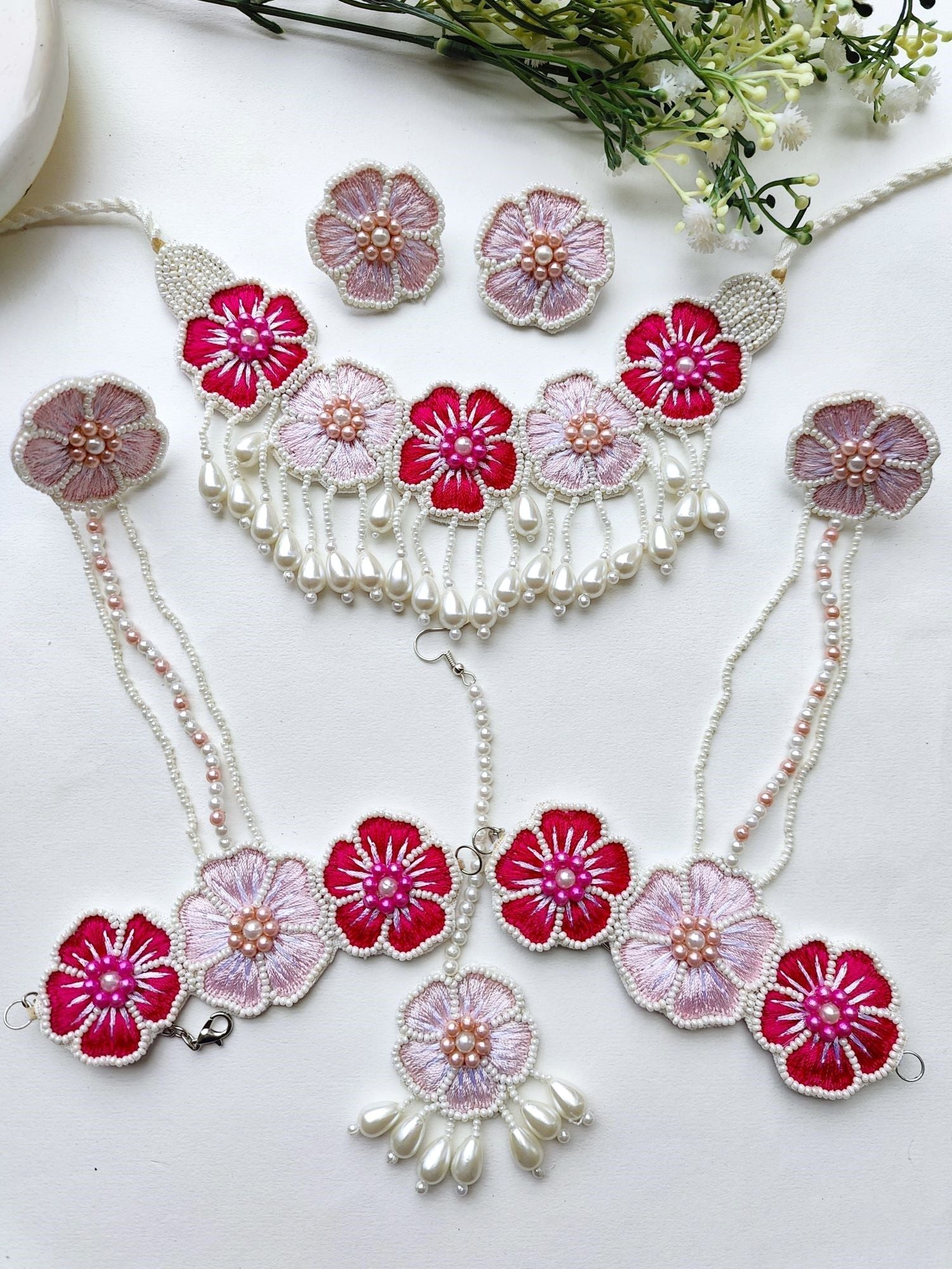 Pink Blossom Beaded Bridal Haldi Jewellery Set