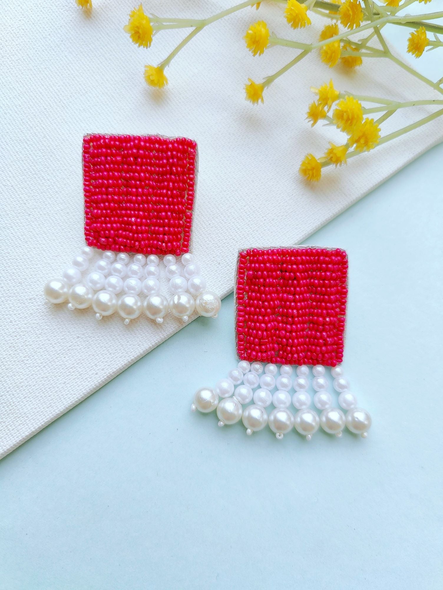 Radiant Pink Pearl: Handcrafted Beaded Earrings for Women and Girls