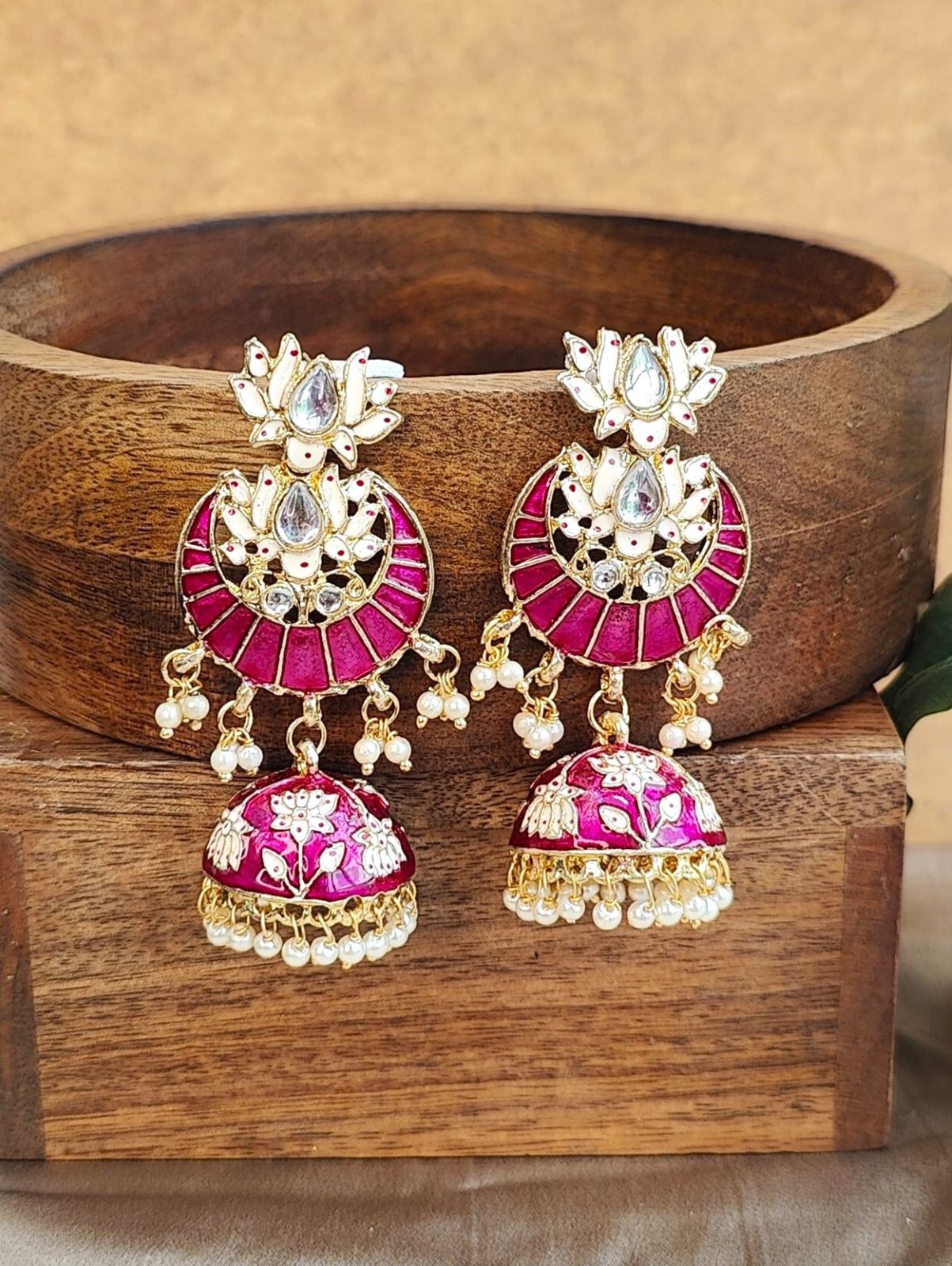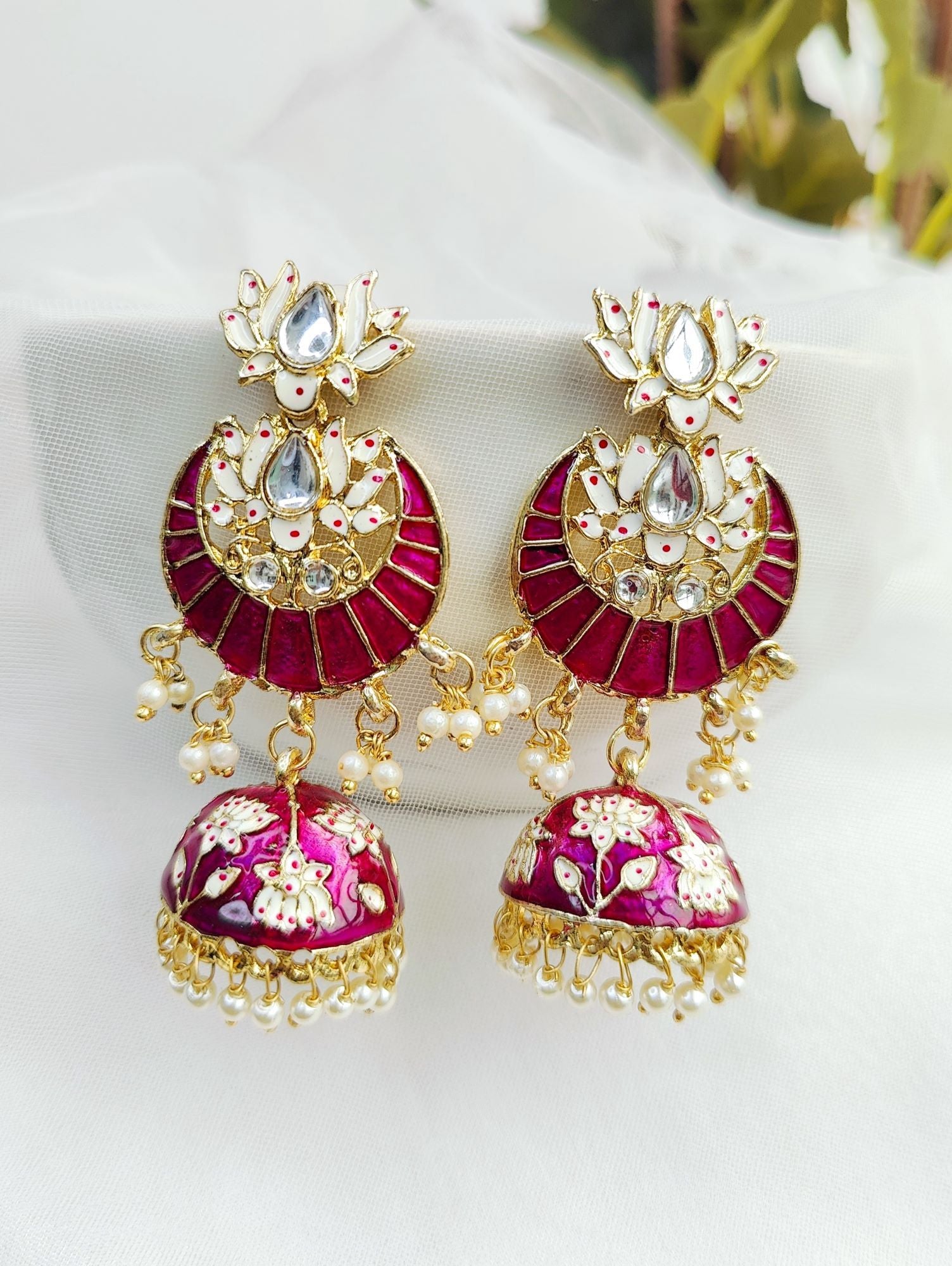 Purple Meenakari Lotus Jhumka Earrings for Women