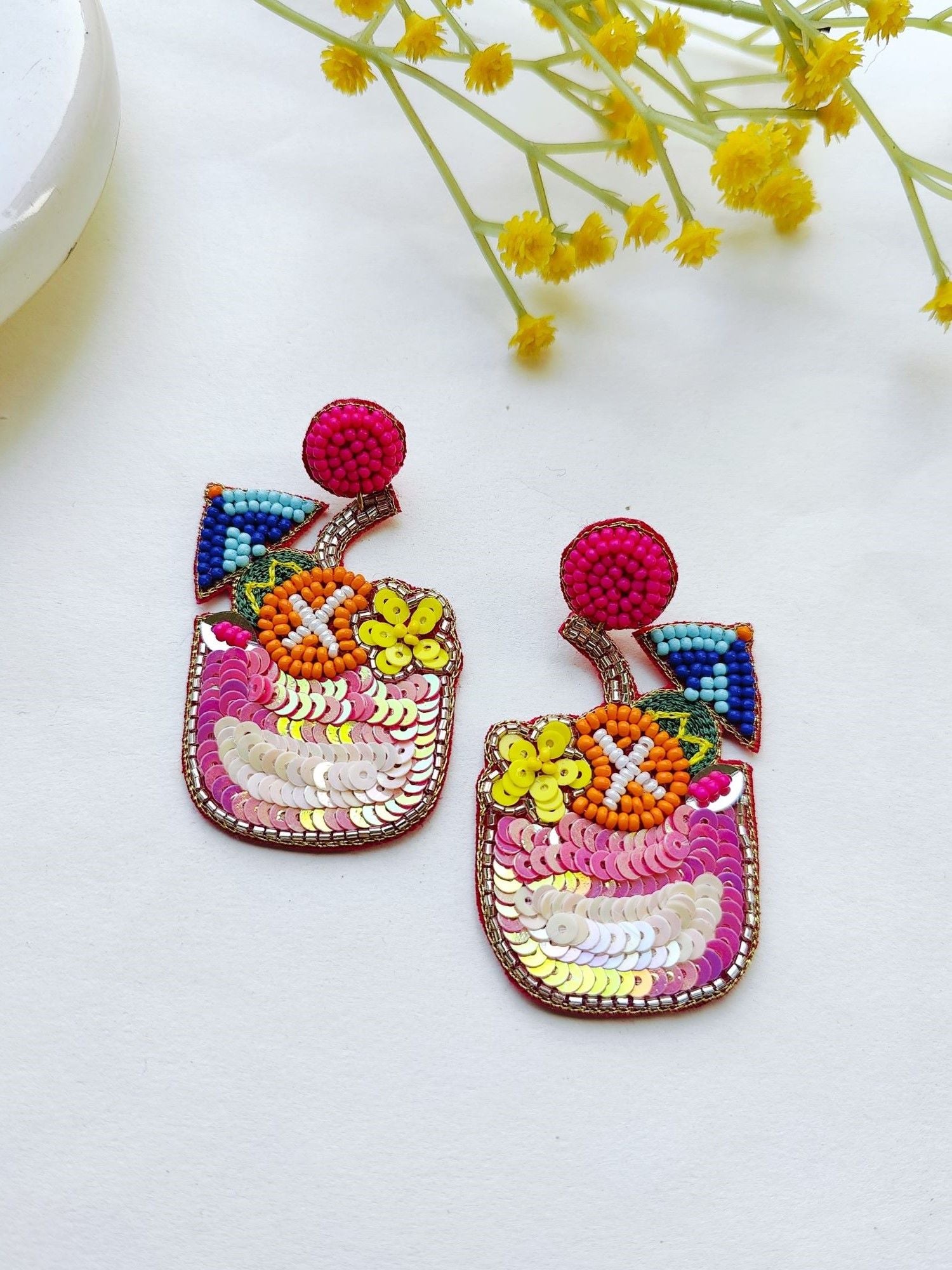 - Handcrafted Boho Beaded Rainbow Cocktail Heart Earrings for Women and Girls