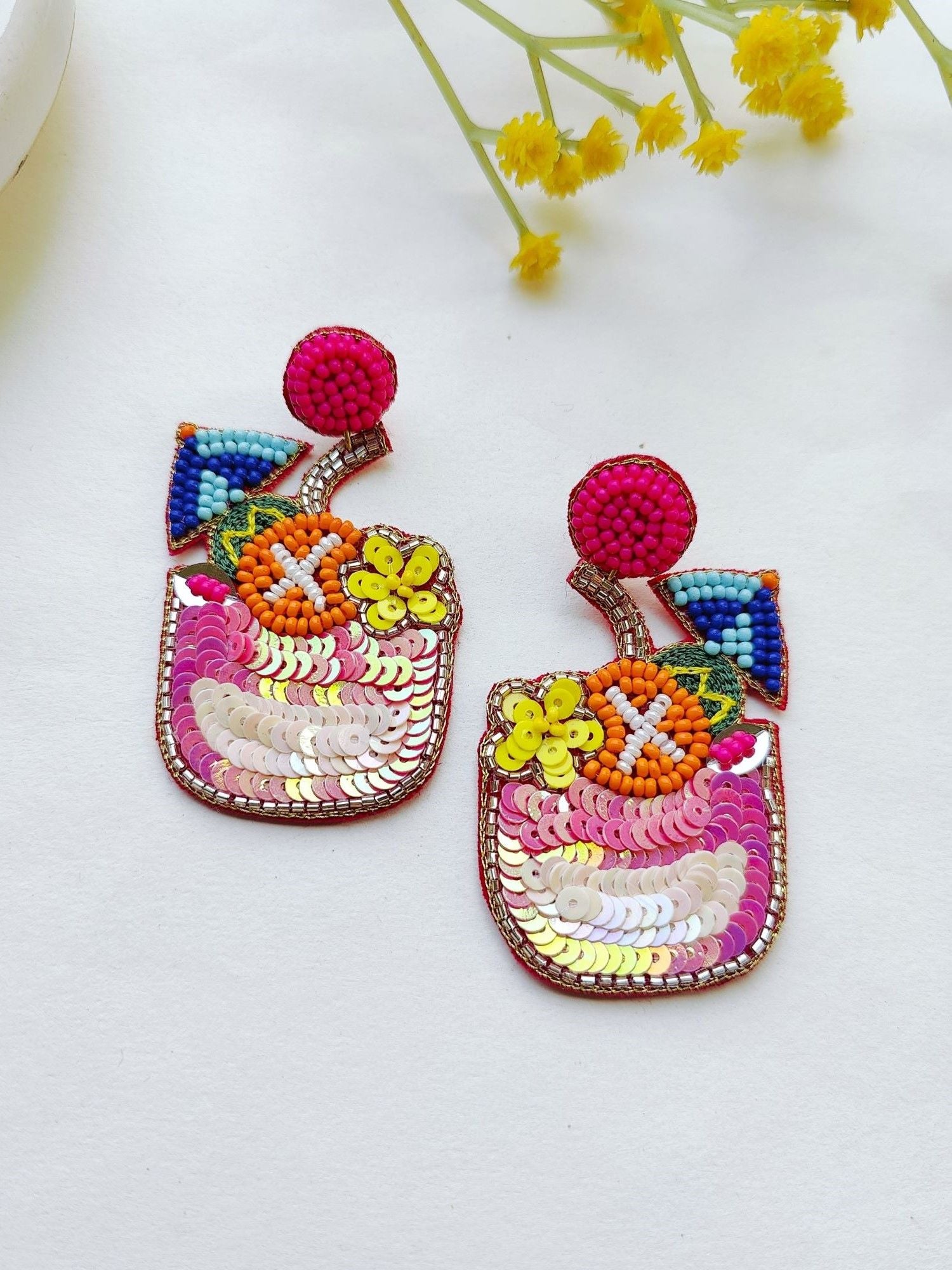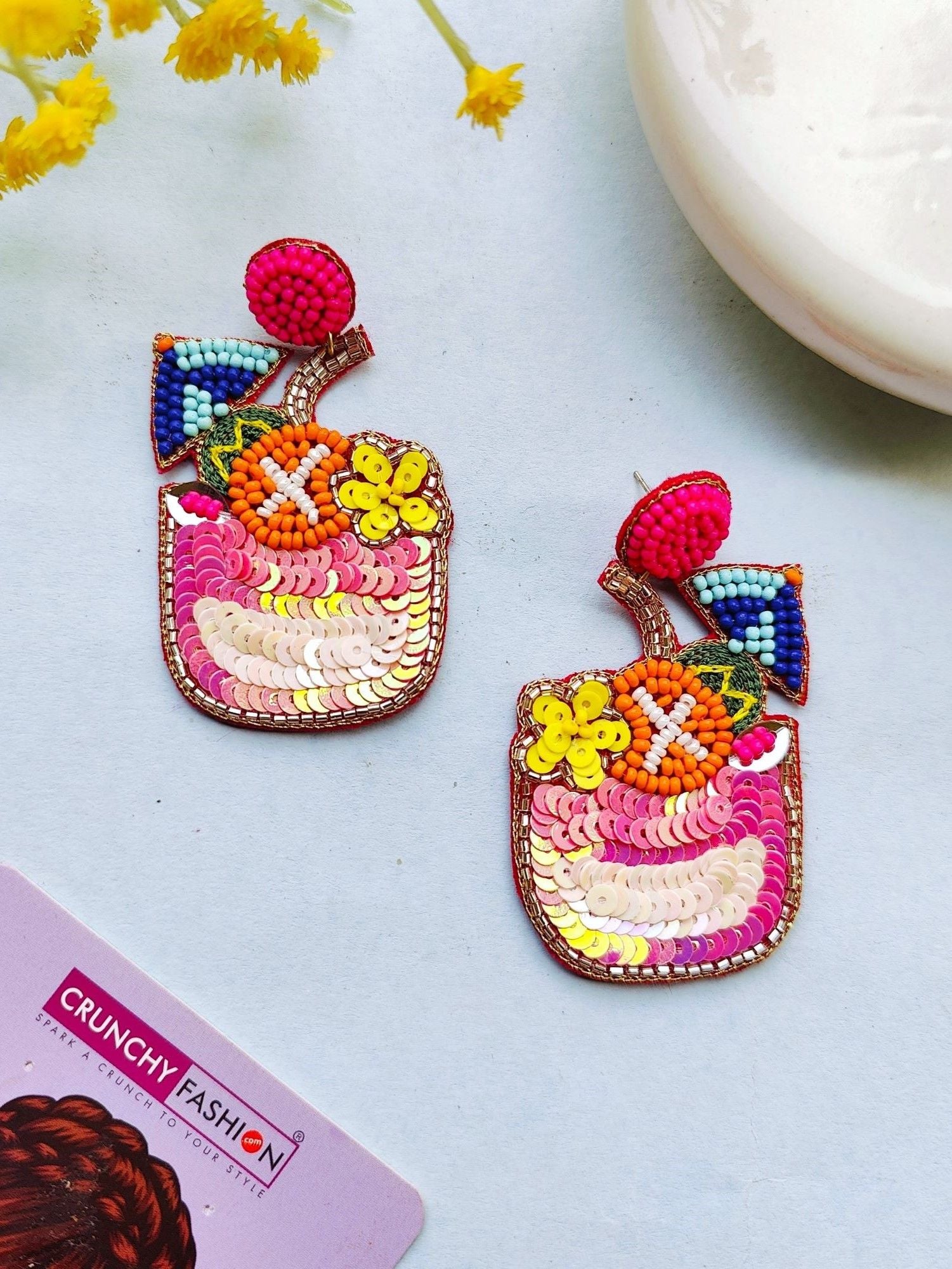 Handcrafted Boho Beaded Rainbow Cocktail Heart Earrings for Women and Girls