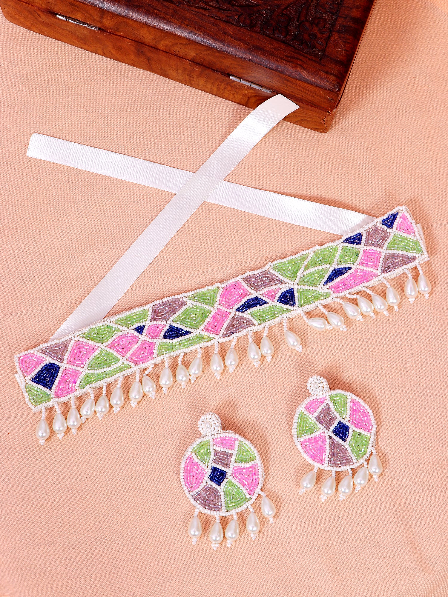 Vibrant Bohemian-Inspired Handcrafted Neon Beaded Choker Set