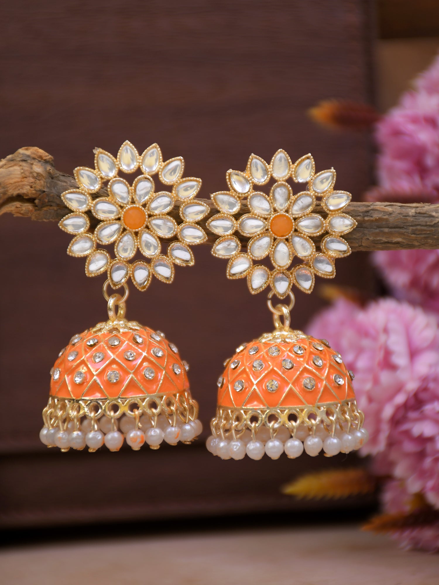 Ruhi Jhumka-Gold Plated Stylish Meenakari Party Wear Jhumka Earrings for Women