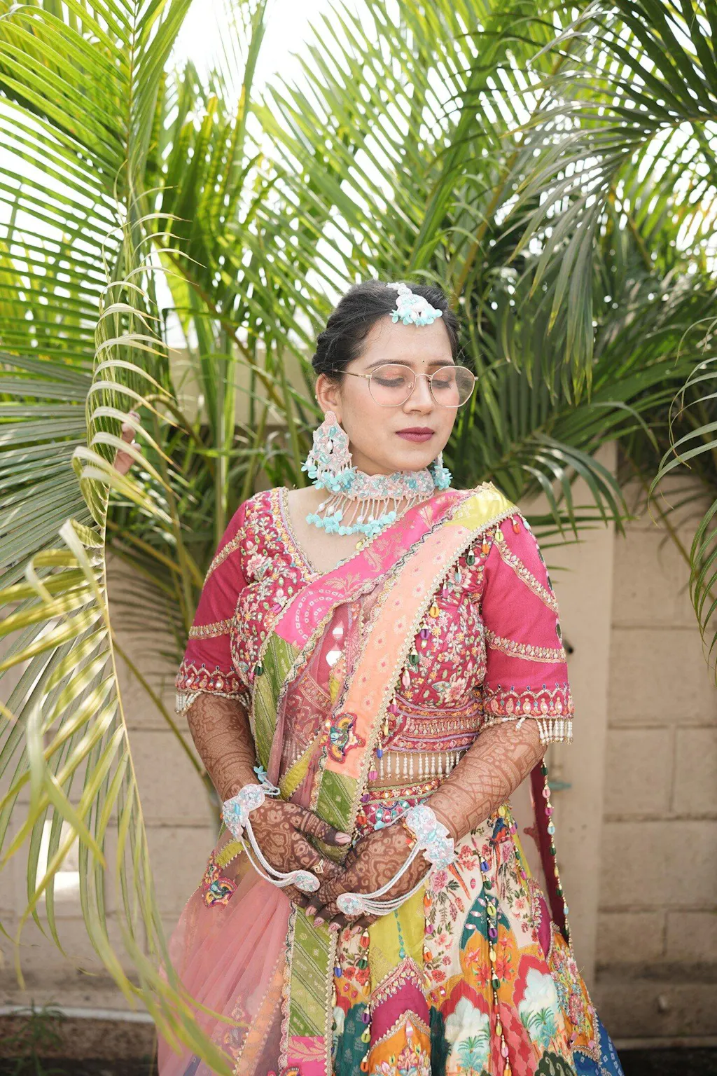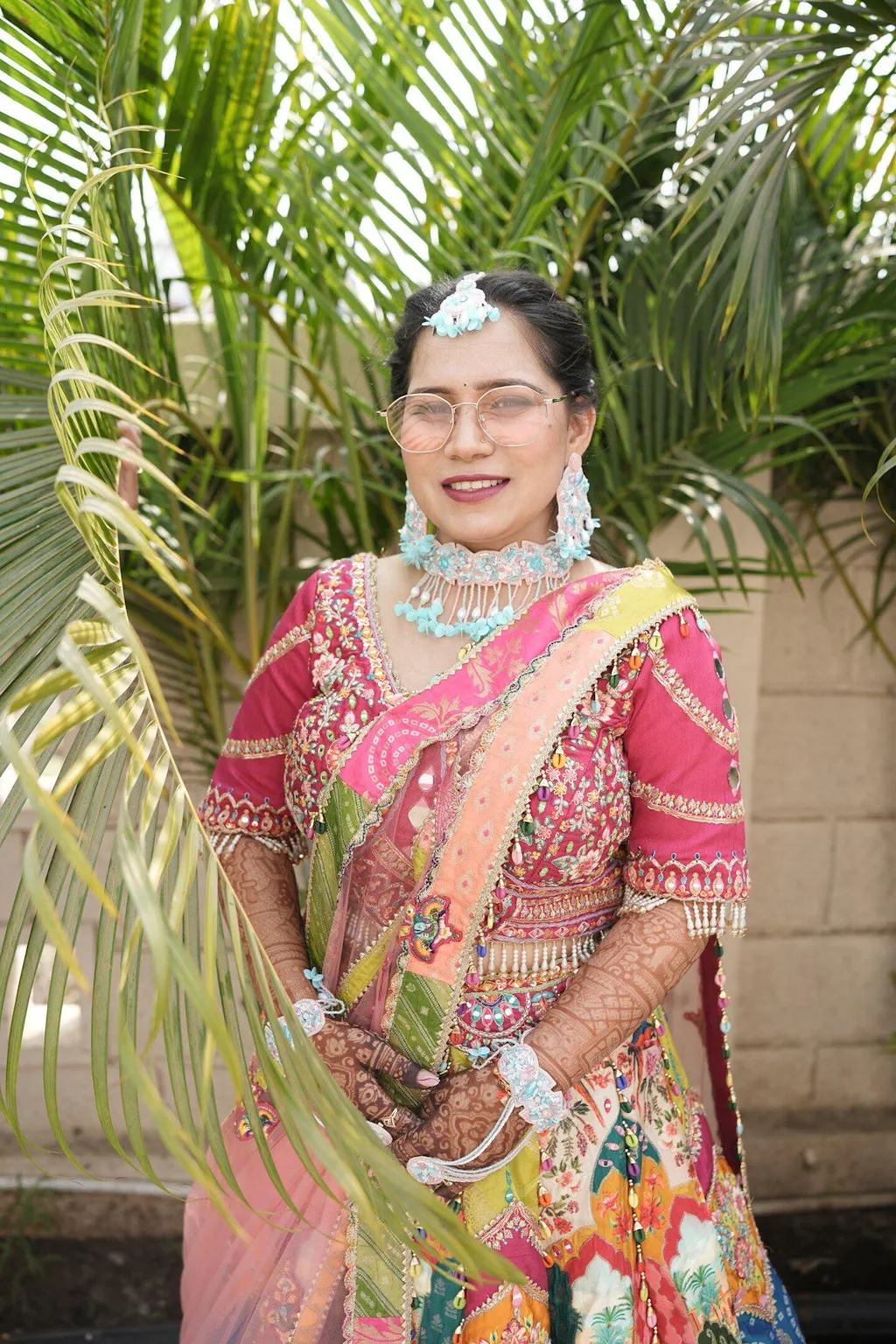 Chic Handcrafted Sky-Blue & Pink Floral Haldi Jewelry Set