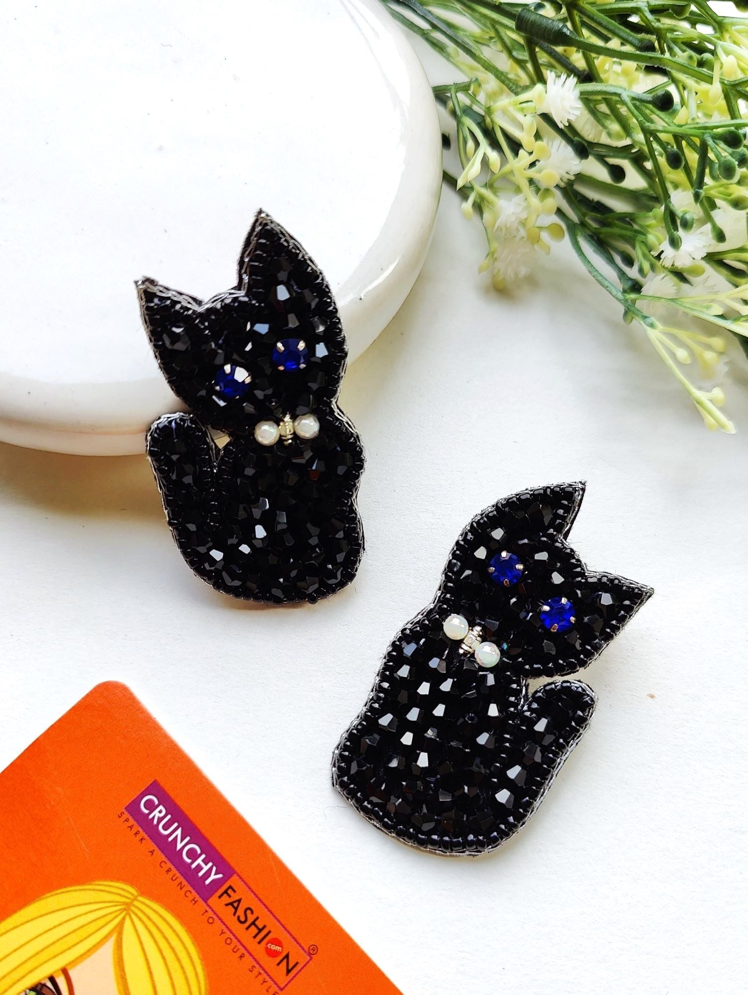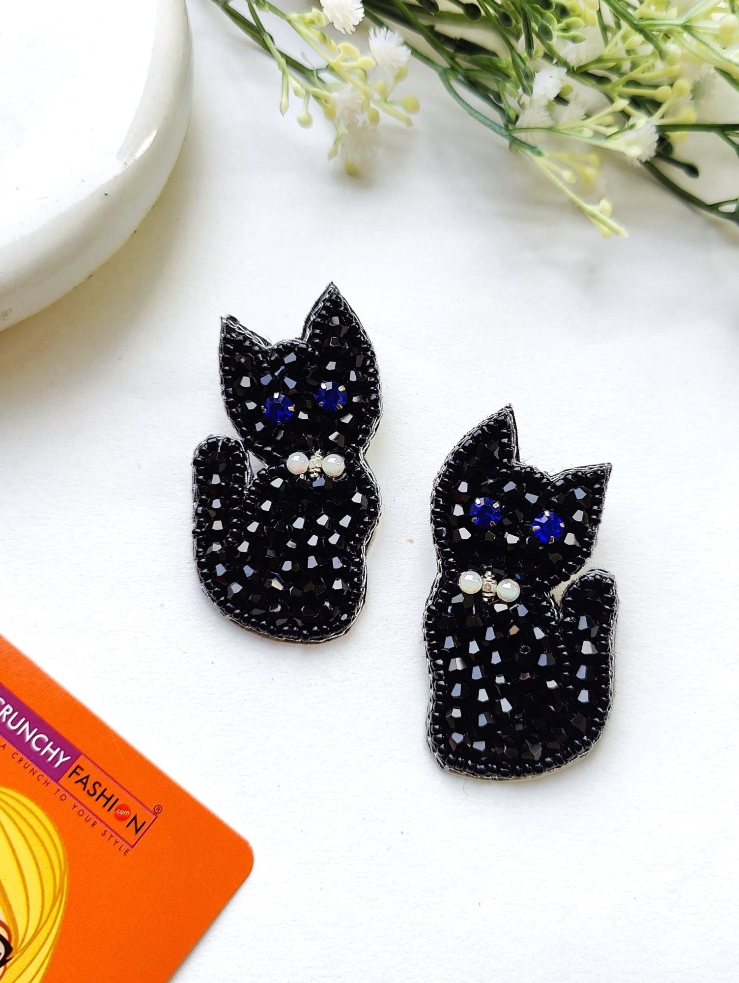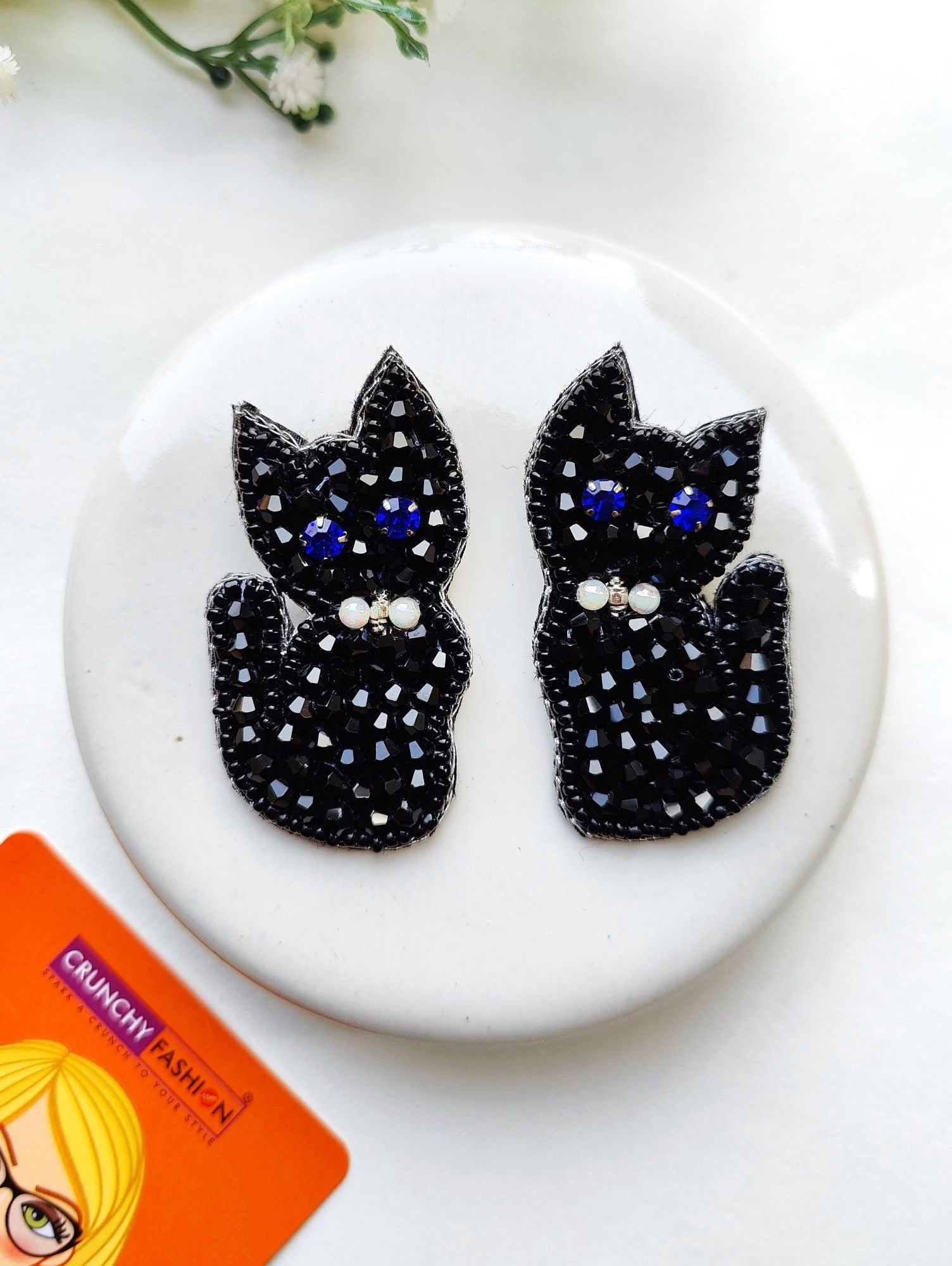 Charming Black Kitty Beaded Earrings: Handcrafted Fashion for Women and Girls