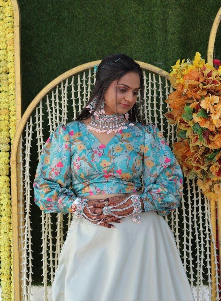 Dazzling Green-Pink Handmade Haldi-Mehndi Jewellery Set