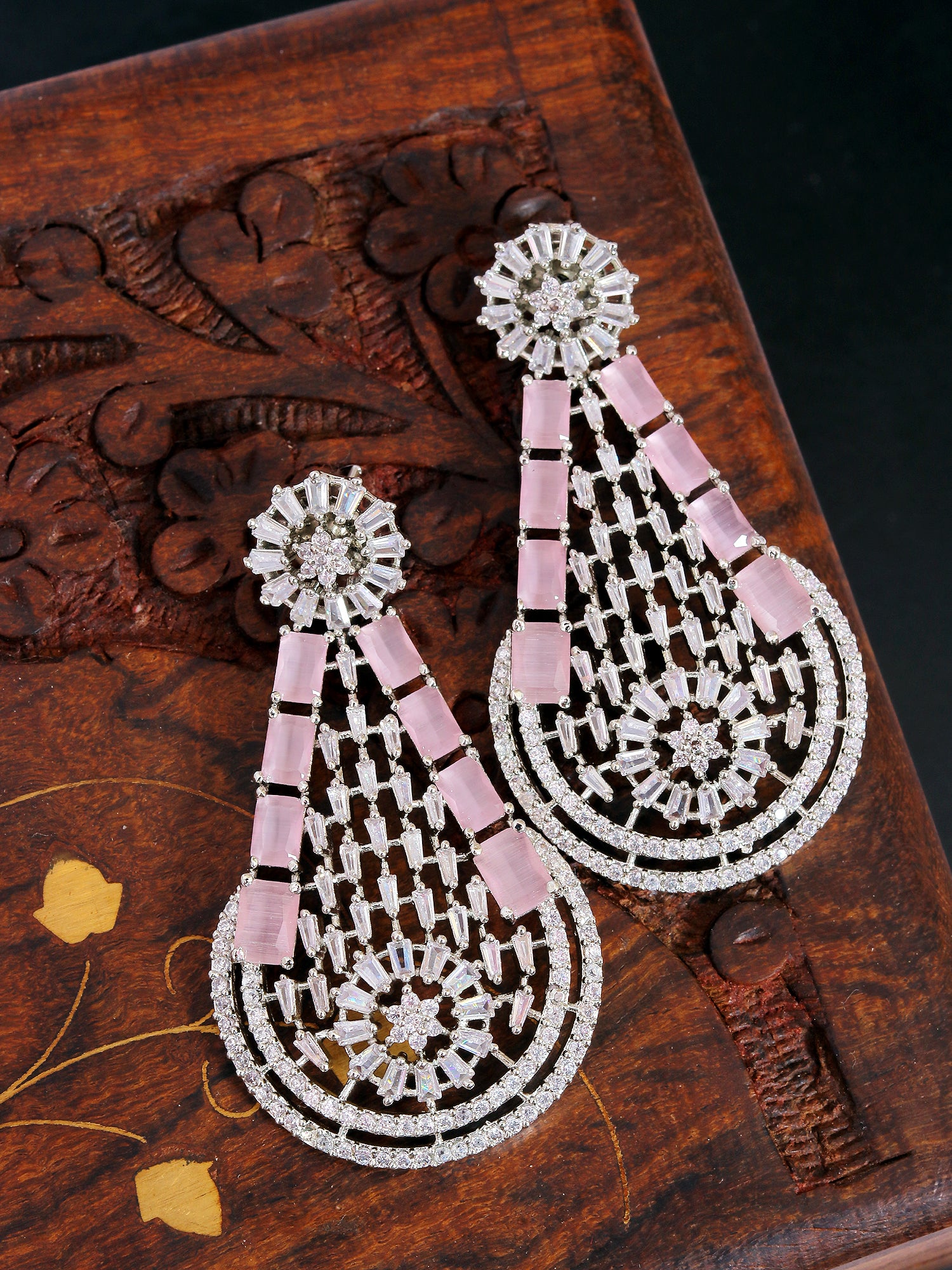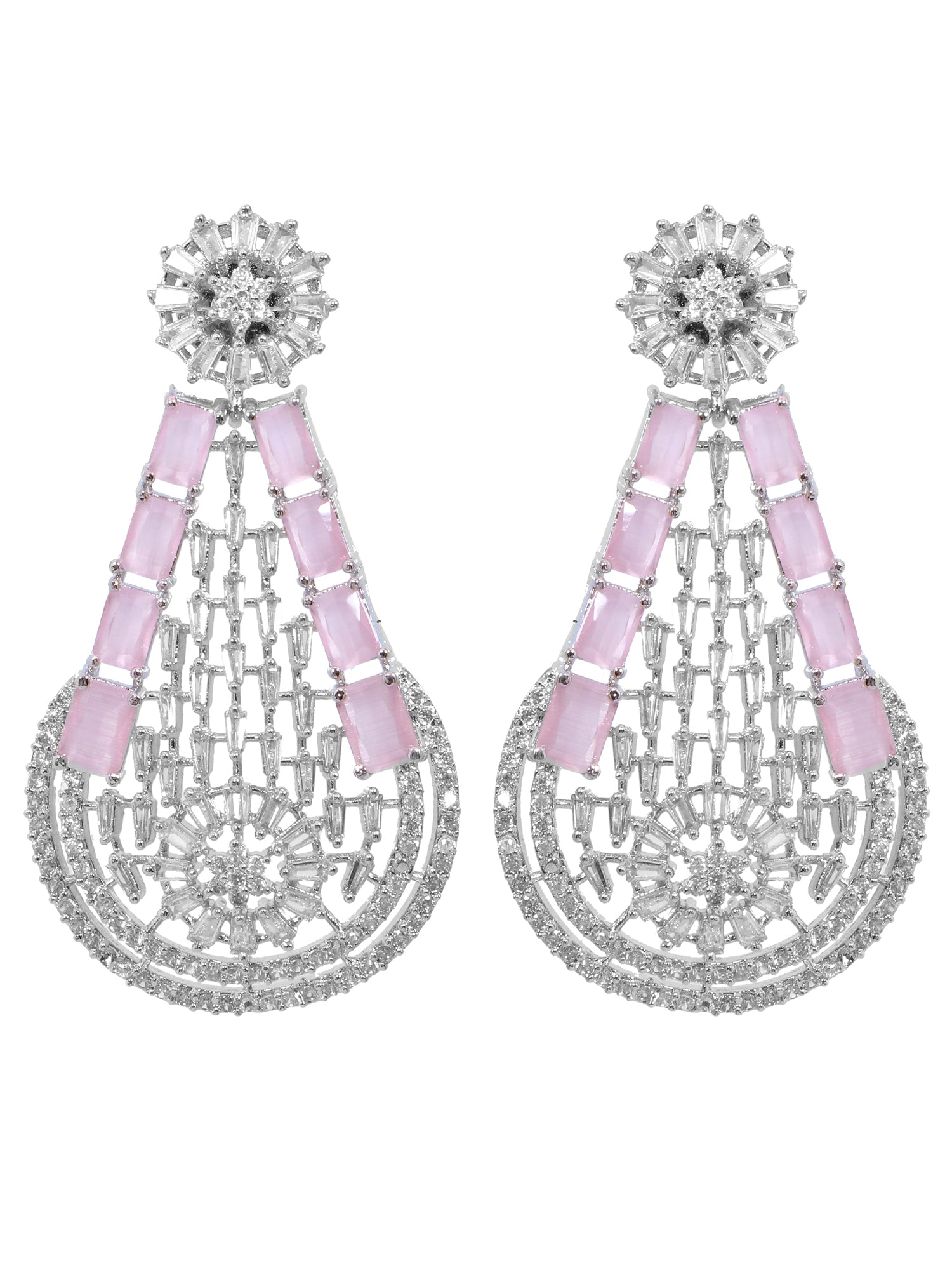 - SwaDev American Diamond Silver & Pink Oval Shape Party Wear Dangler Earring SDJE0001