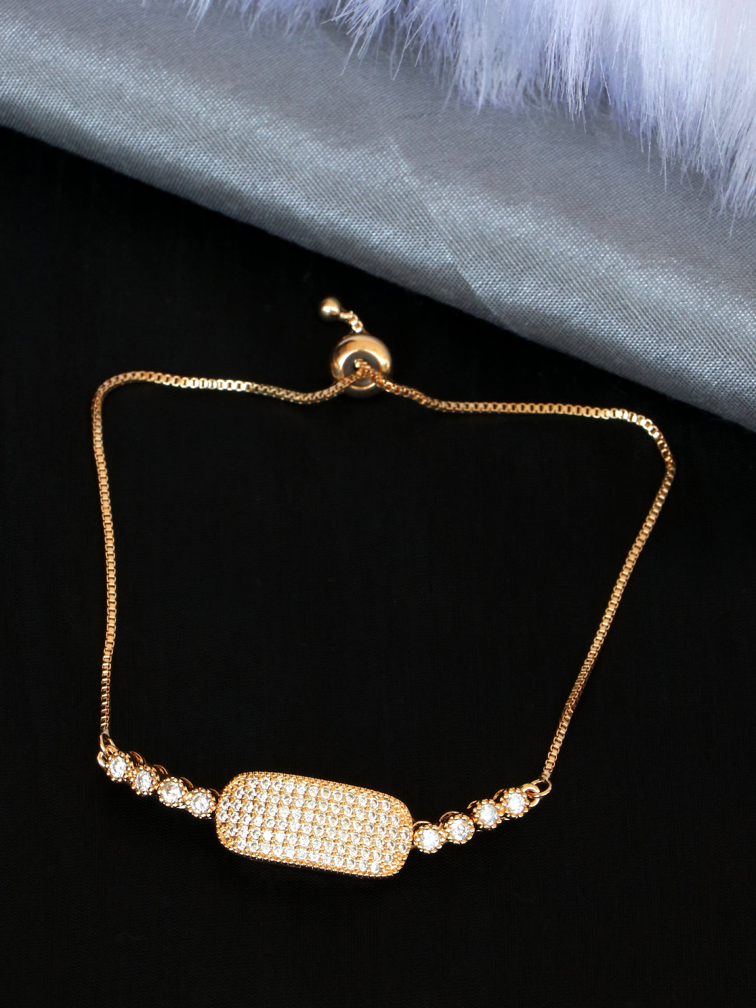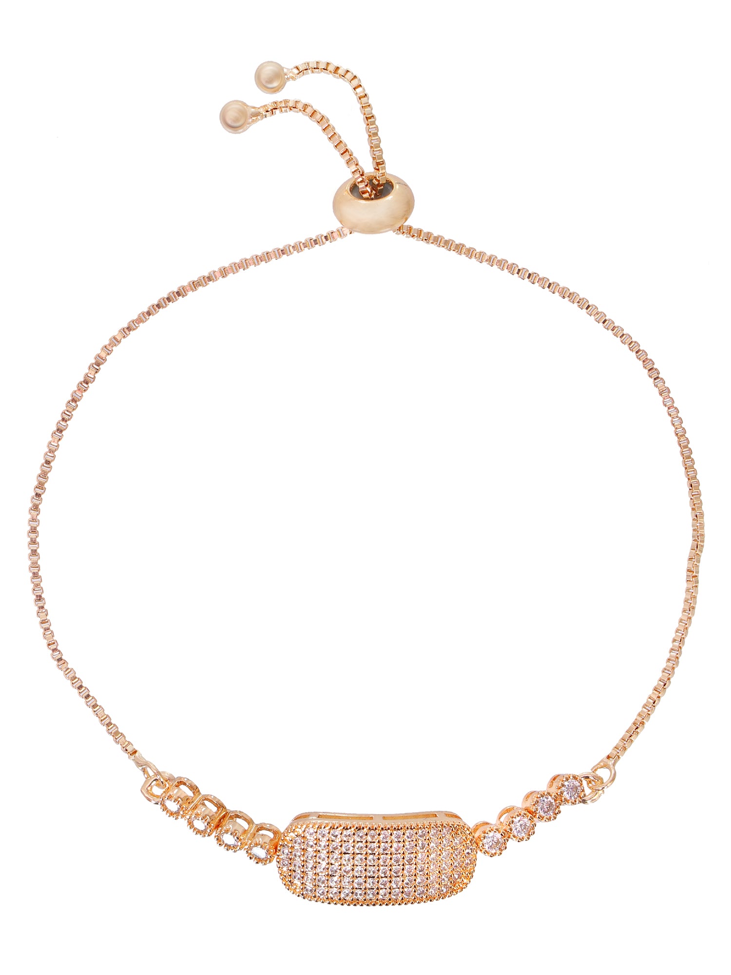 - SwaDev Rose-Gold Plated AD Studded Pave Slider Pull-Chain Bracelet SDJB0026