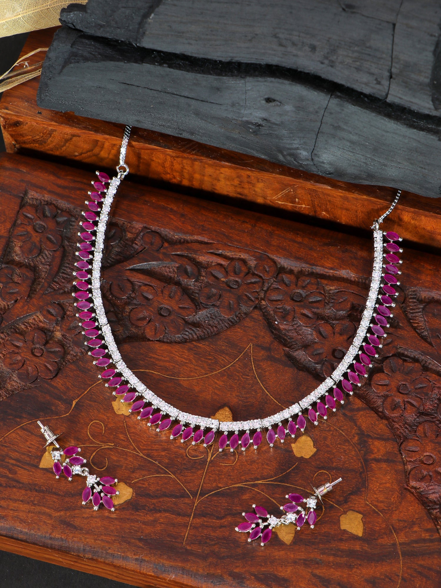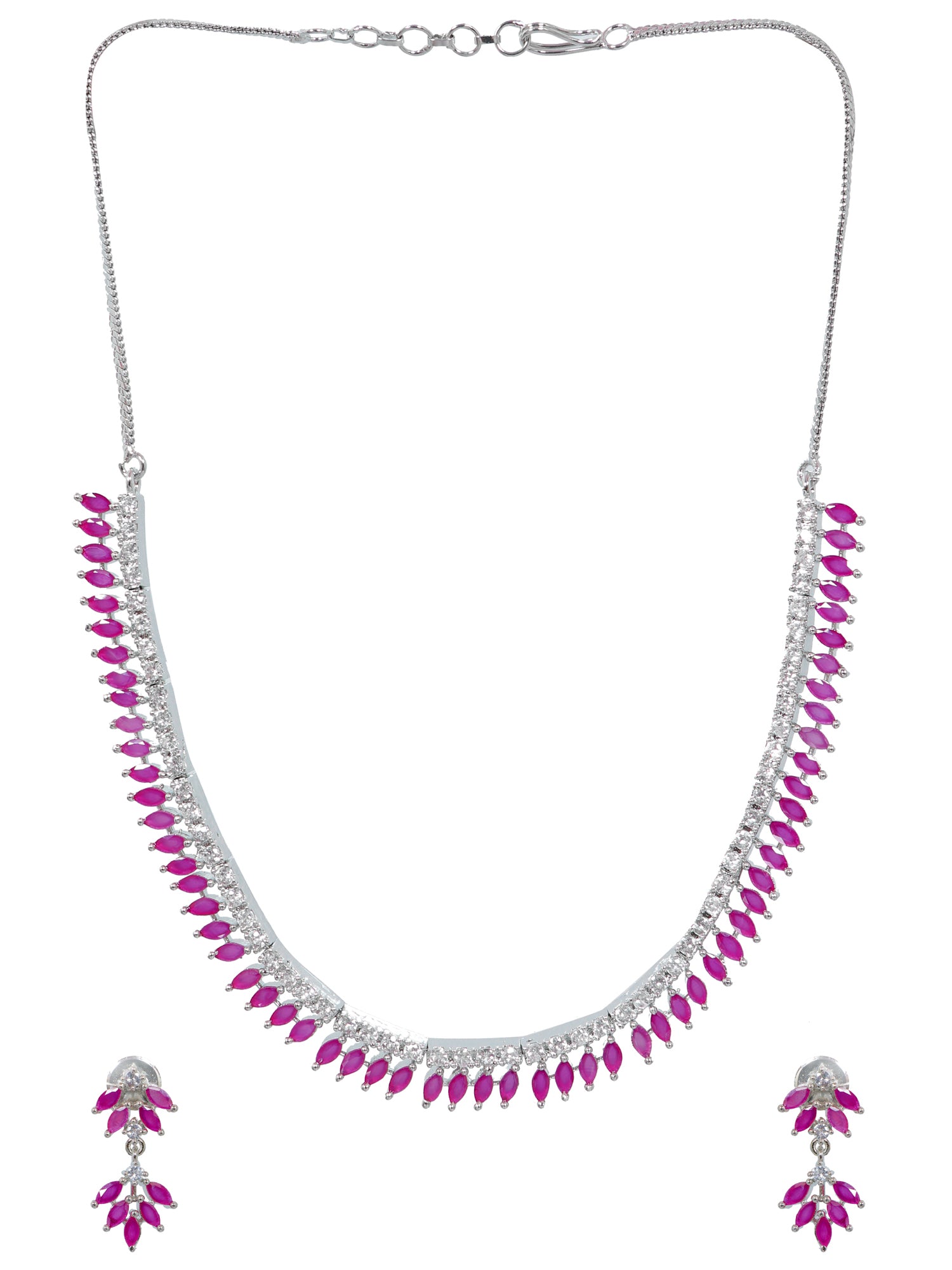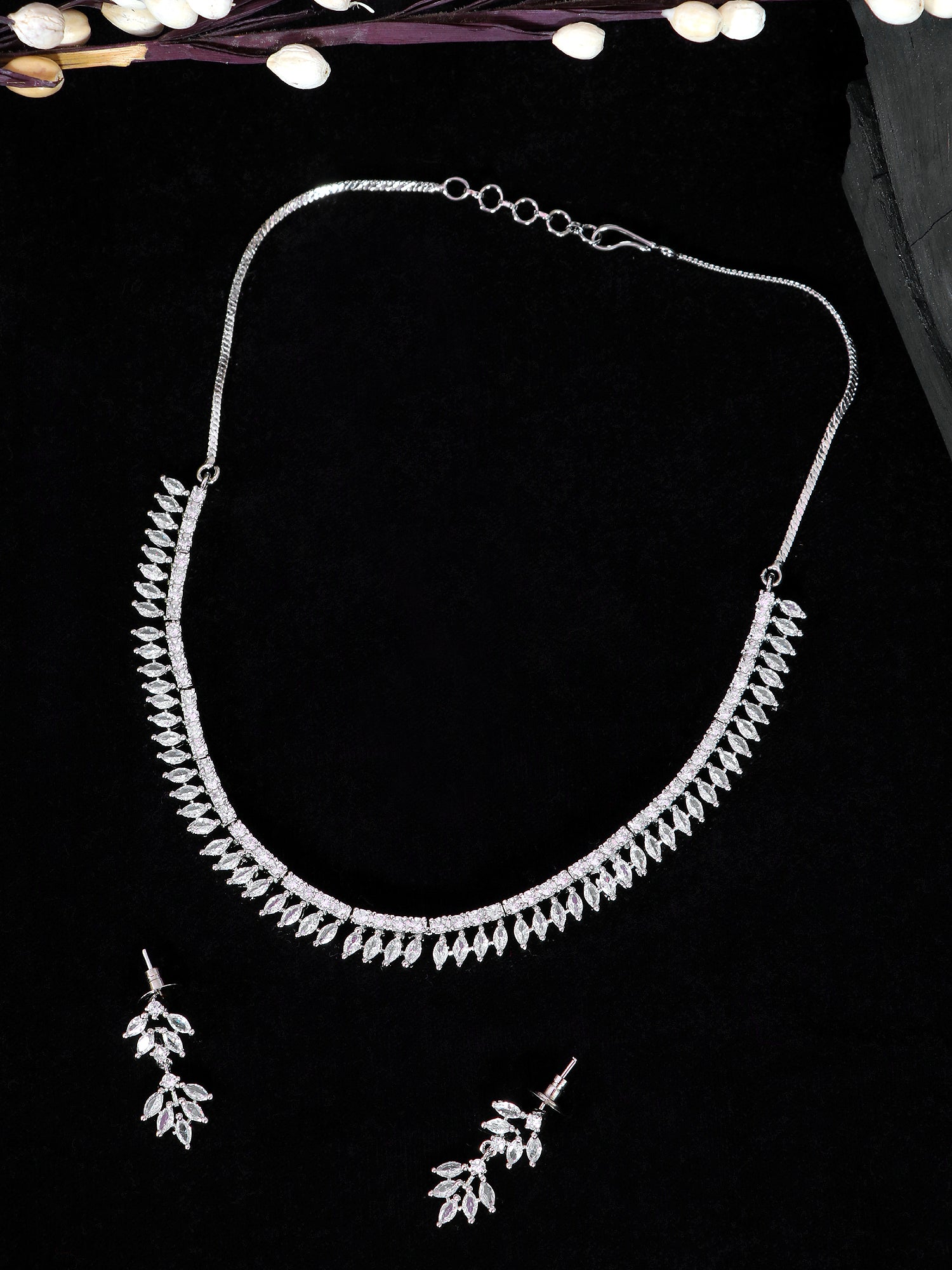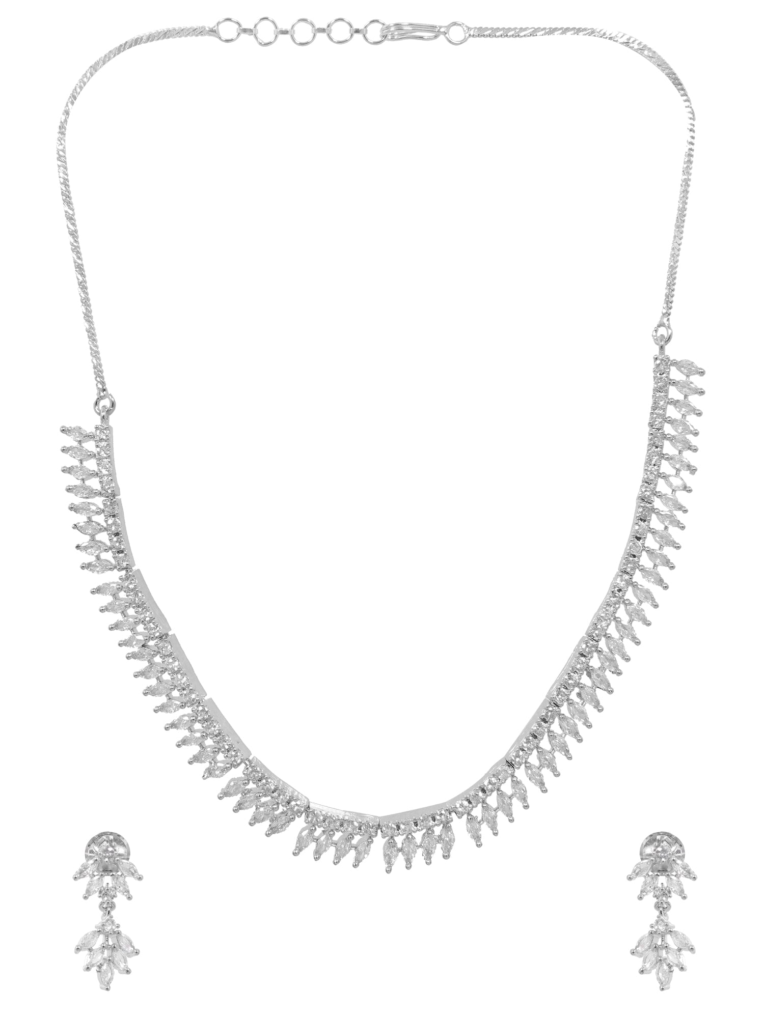 - Silver-Plated & White American Diamond Studded Jewellery Set SDJS0030