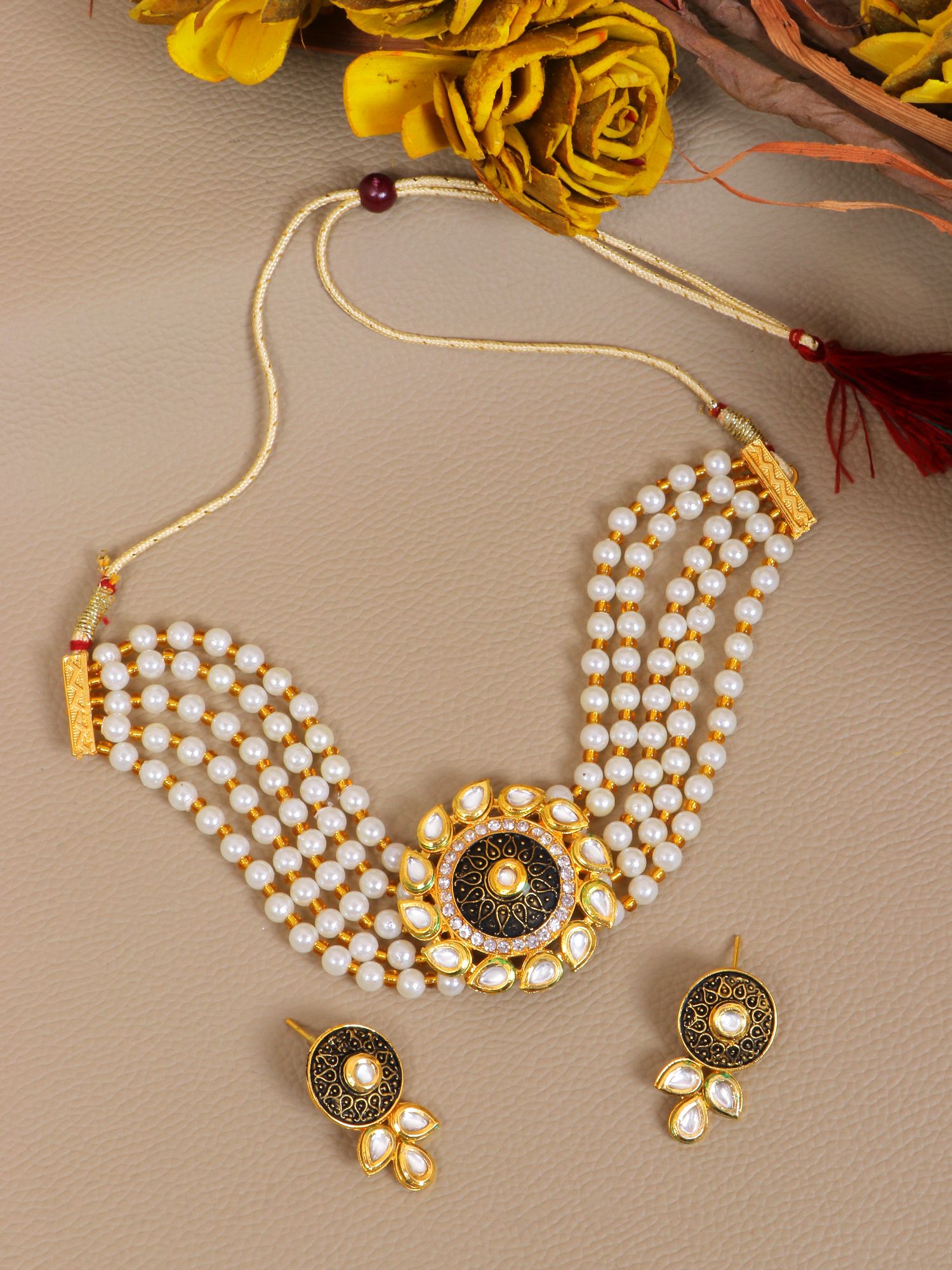 Traditional Black Kundan Choker Jewellery Set for Wedding and Party Wear