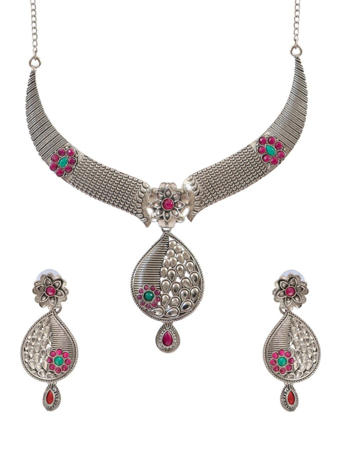 - Traditional German Silver Floral Necklace Set With Earrings RAS0343