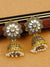 These exquisite oxidised earrings are regarded as the embodiment of elegance and sophistication. Perfect for all fashion-loving girls, these earrings enhance your beauty as they gracefully sway with your movements. The white kundan and pearl jhumkas are masterfully set in a golden floral motif, giving the earrings a refined and stylish look. Every facet of these earrings is meticulously designed, making them an ideal choice for any traditional or contemporary ensemble. Furthermore, their unique design elevates your attire, making you the center of attention in every gathering. These stone earrings, with their fancy and trendy aesthetics, are also a fine piece of jewellery for girls who prefer artificial yet quality pieces. Enjoy a grandiose look with our new design earrings. Place them in your cart, and add that sparkling touch to your personality, courtesy of our stylish earrings.