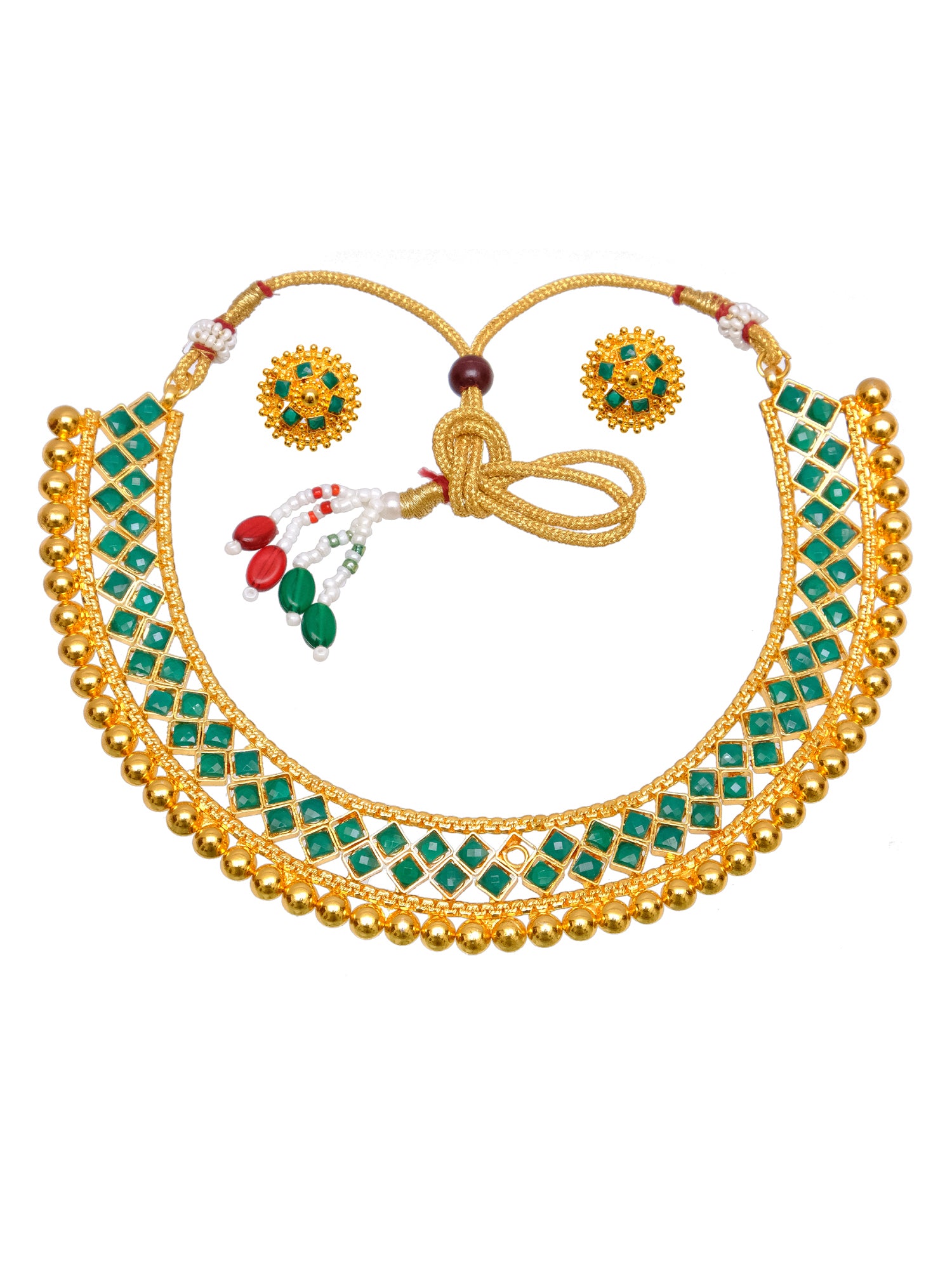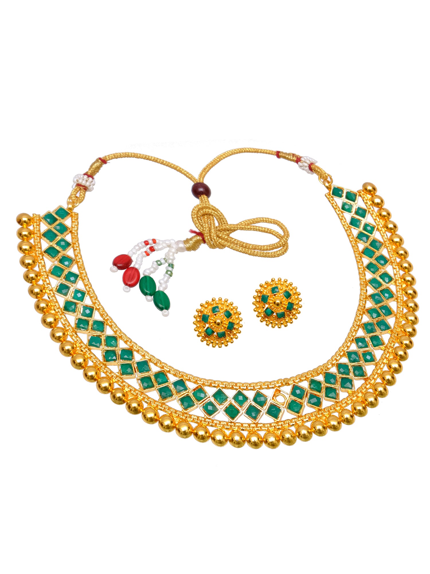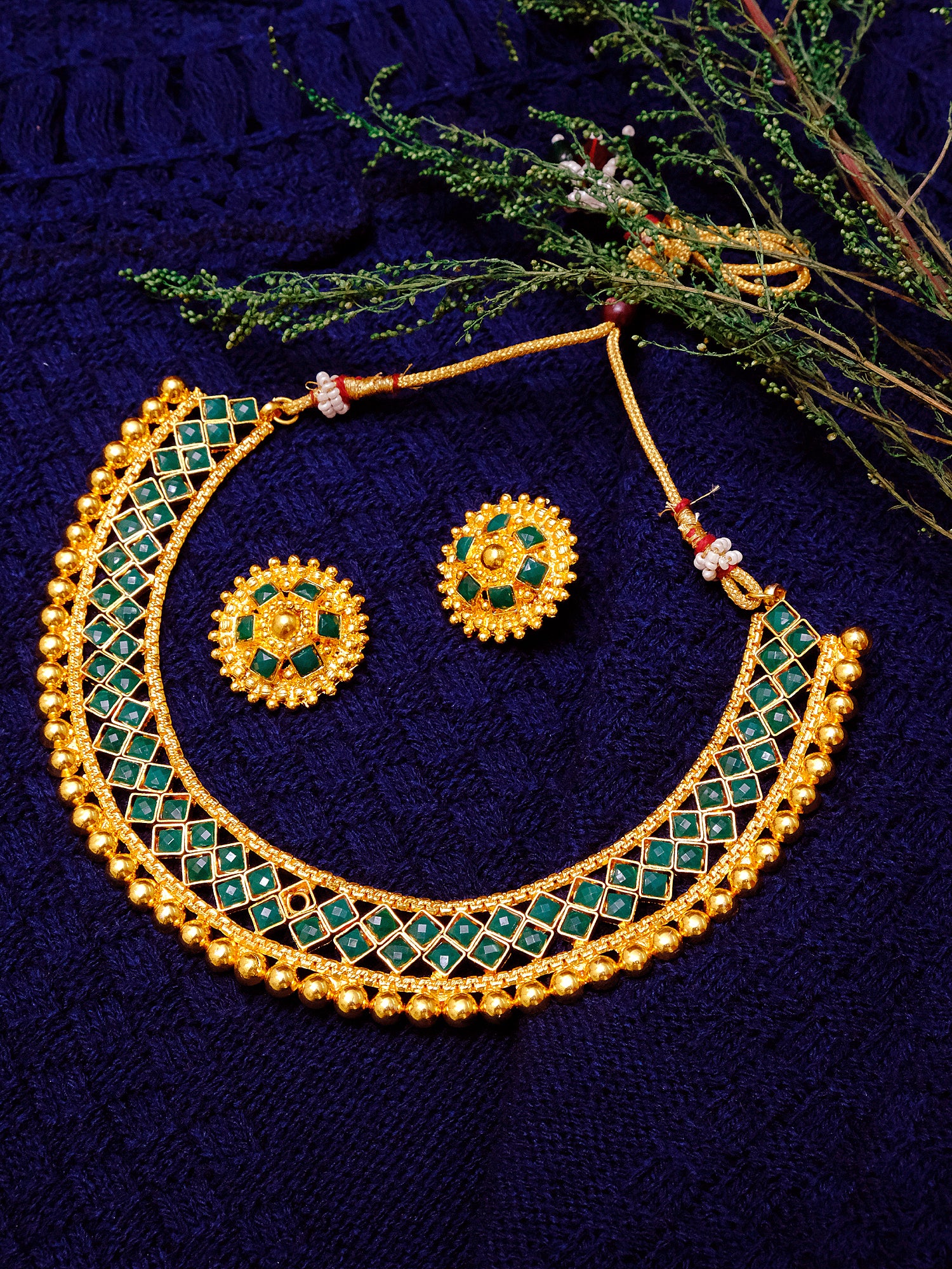 Maroon gold-plated polished alloy necklace and earring set, ideal for women and girls on engagements, anniversaries, festivals, and weddings. Traditional yet modern kundan bridal jewellery set.